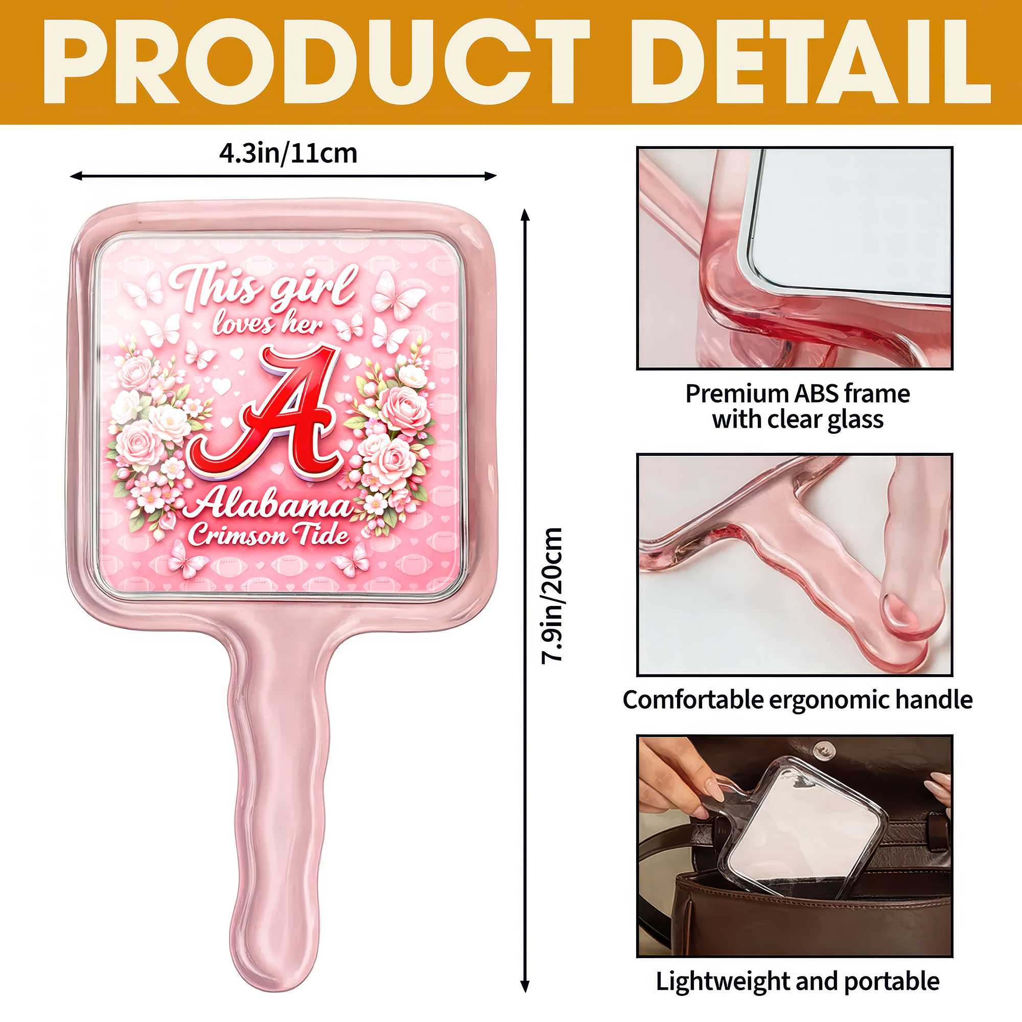 Alabama Crimson Tide | Premium NCAA Butterfly Glam Handheld Mirror