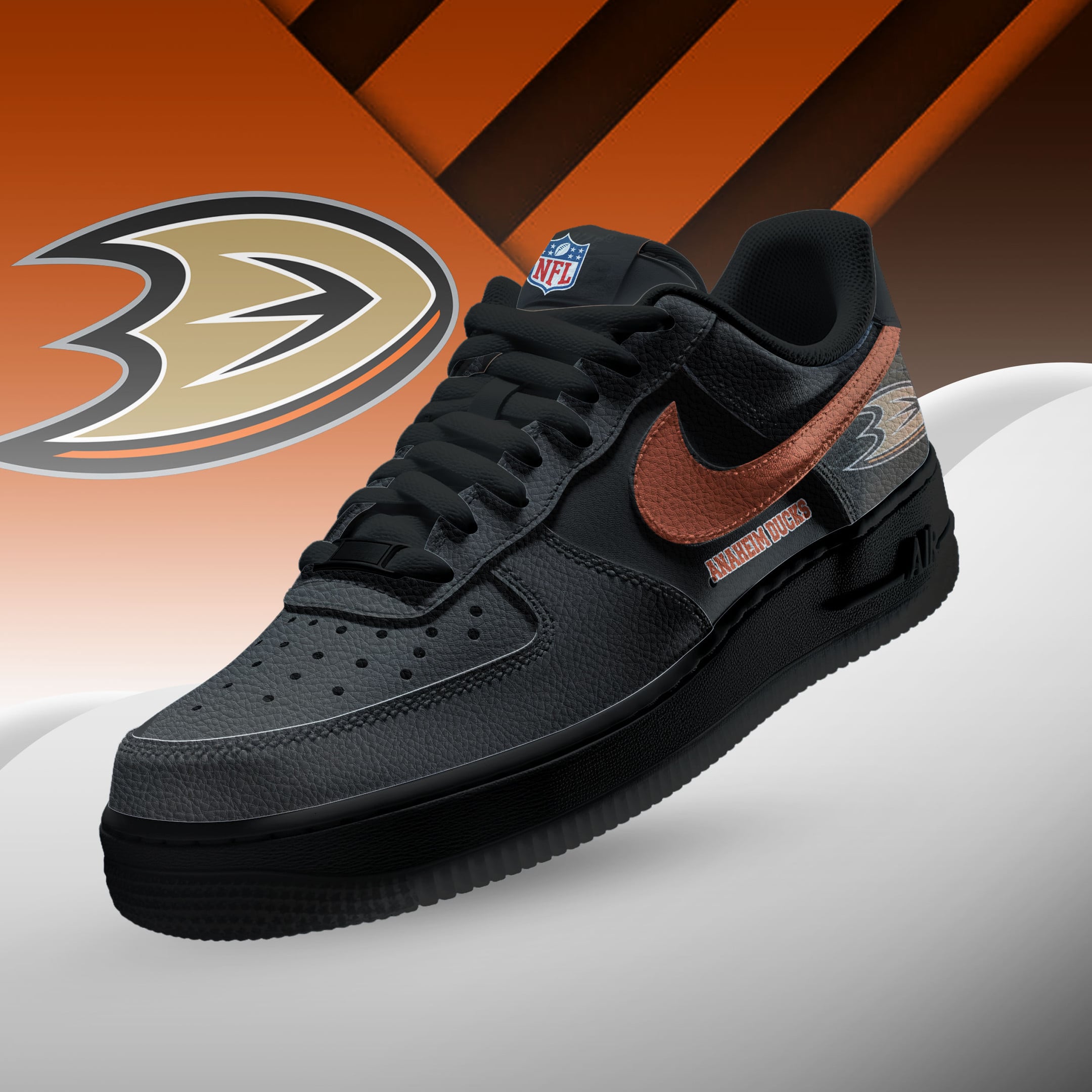 - This item: Anaheim Ducks | Premium NHL Teams Black AF1 Shoes Original price was: $120.00.$89.95Current price is: $89.95.