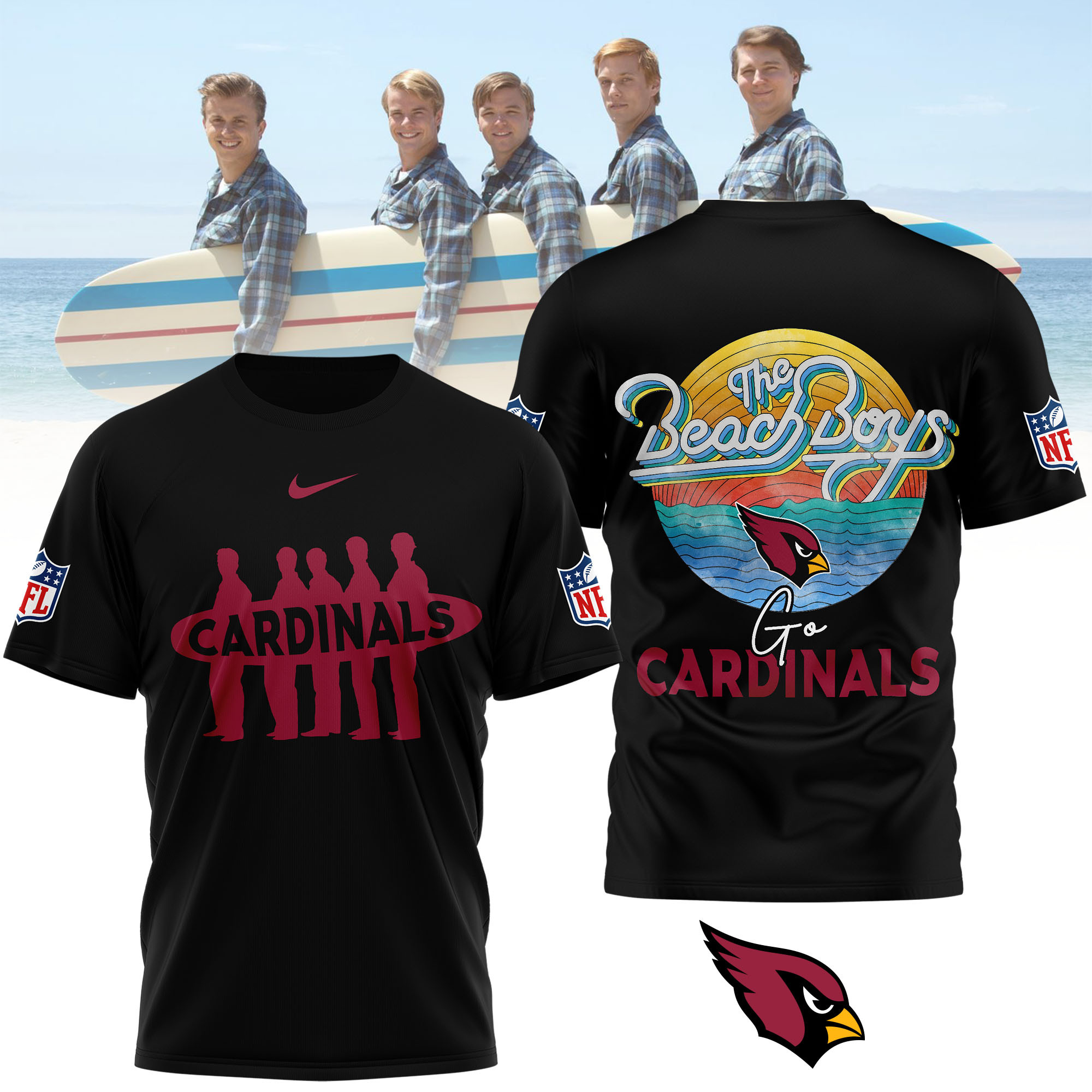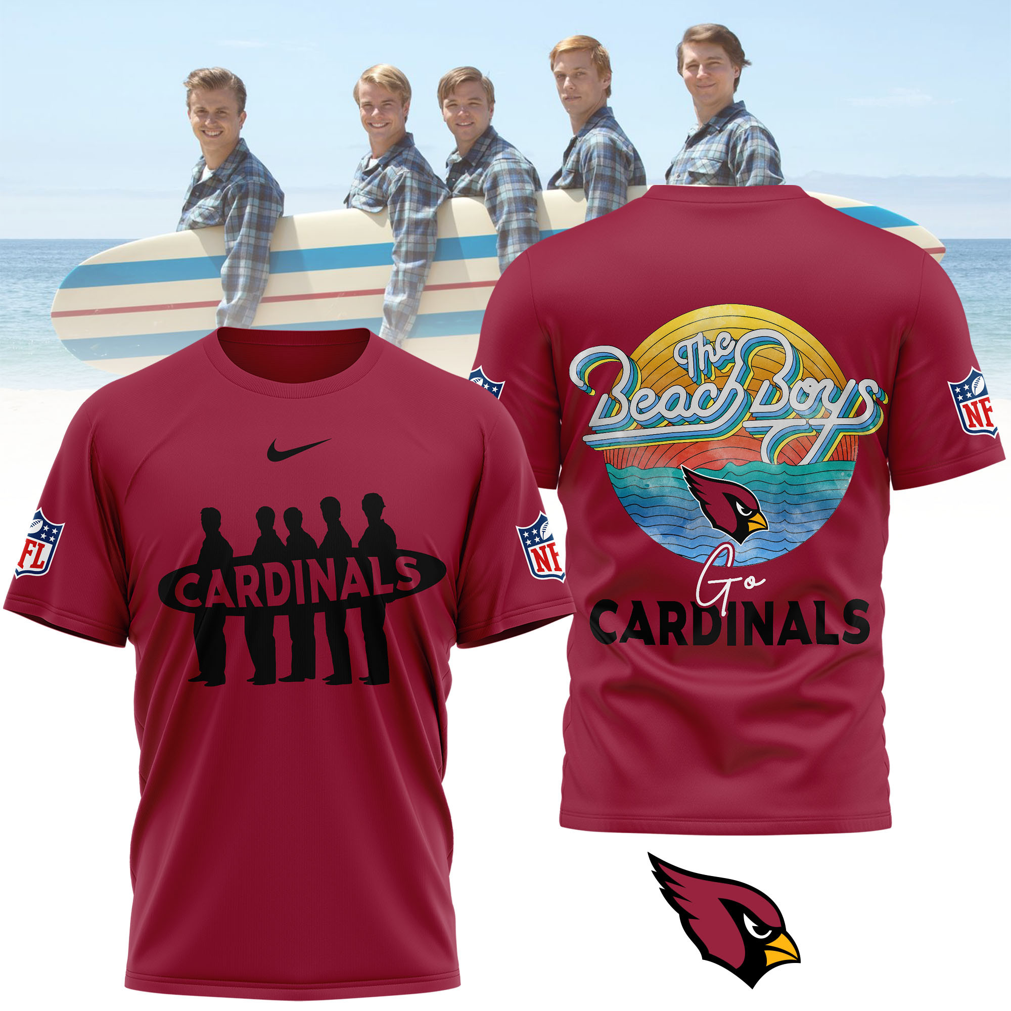 - This item: Arizona Cardinals | Premium NFL The Beach Boys 3D Shirt Original price was: $32.95.$27.95Current price is: $27.95.