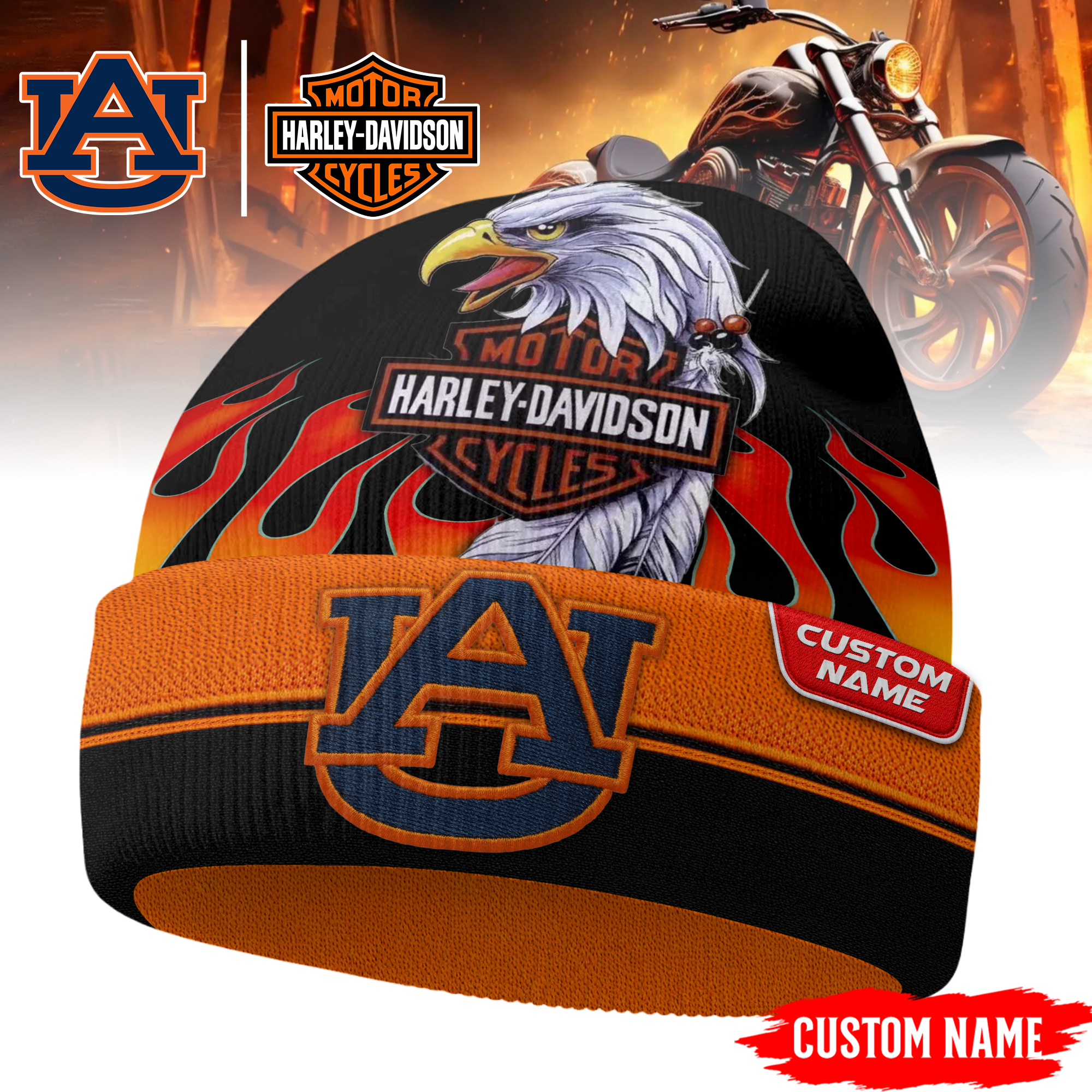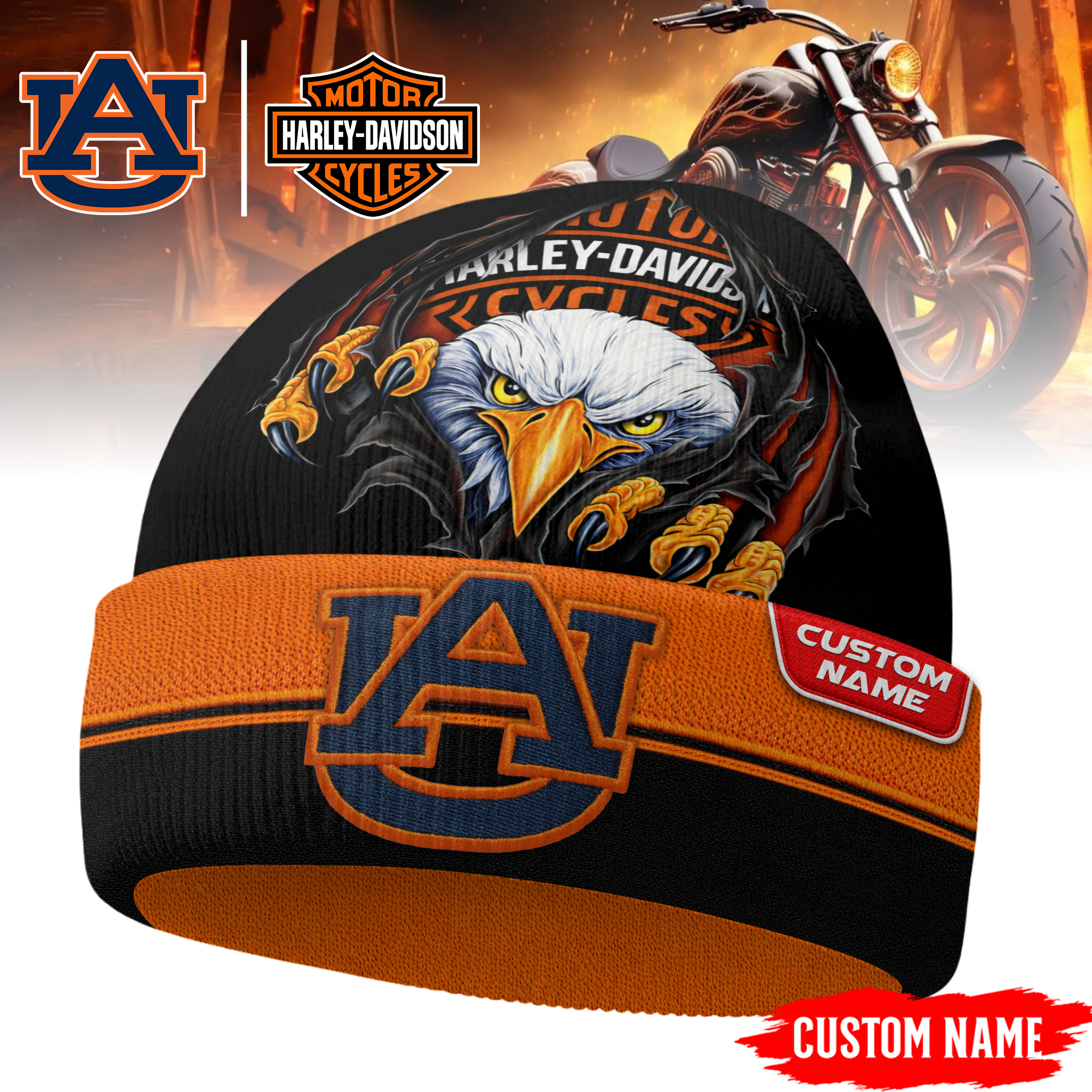 Categories: Auburn Tigers, NCAA, Premium NCAA Harley Davidson Beanie Hat TD