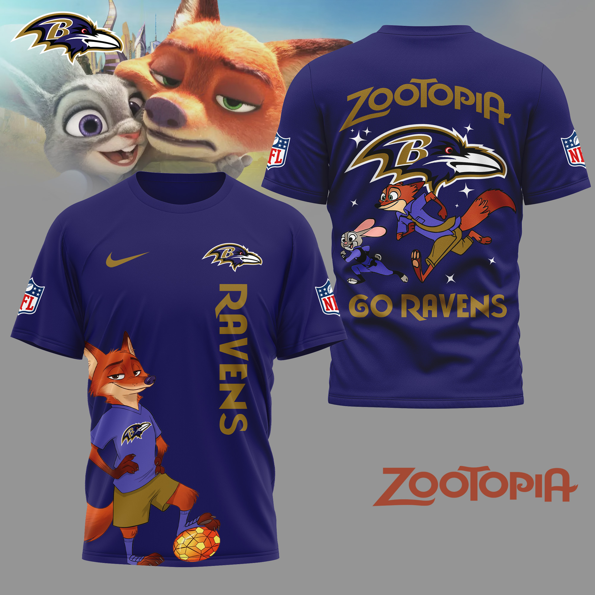 Baltimore Ravens | Premium NFL and Zootopia Fan 3D Shirt