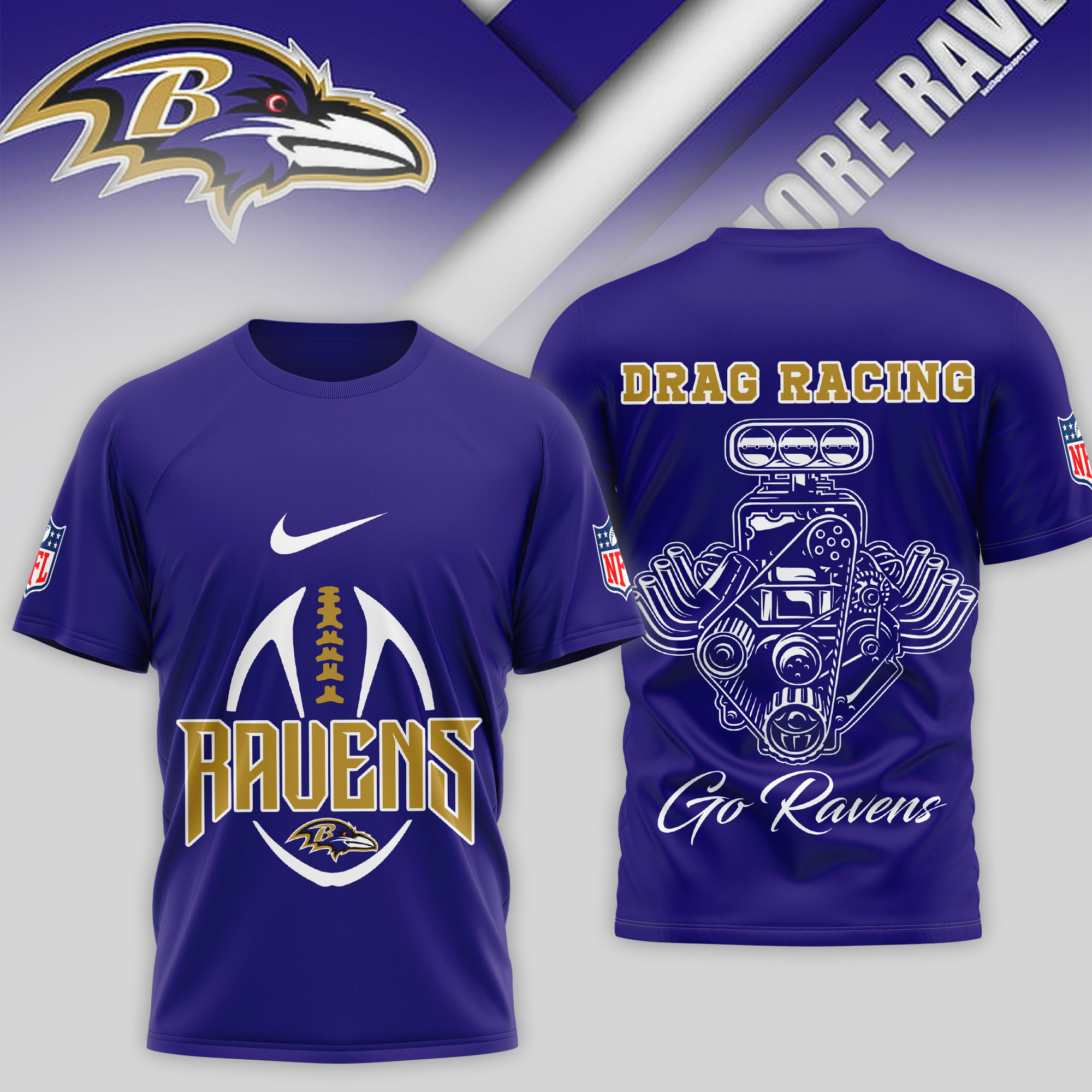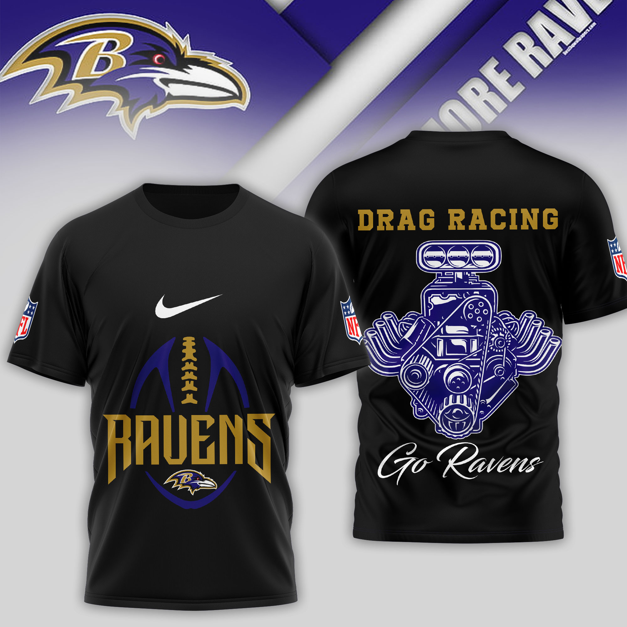 Baltimore Ravens | Premium NFL Drag Racing 3D Shirt