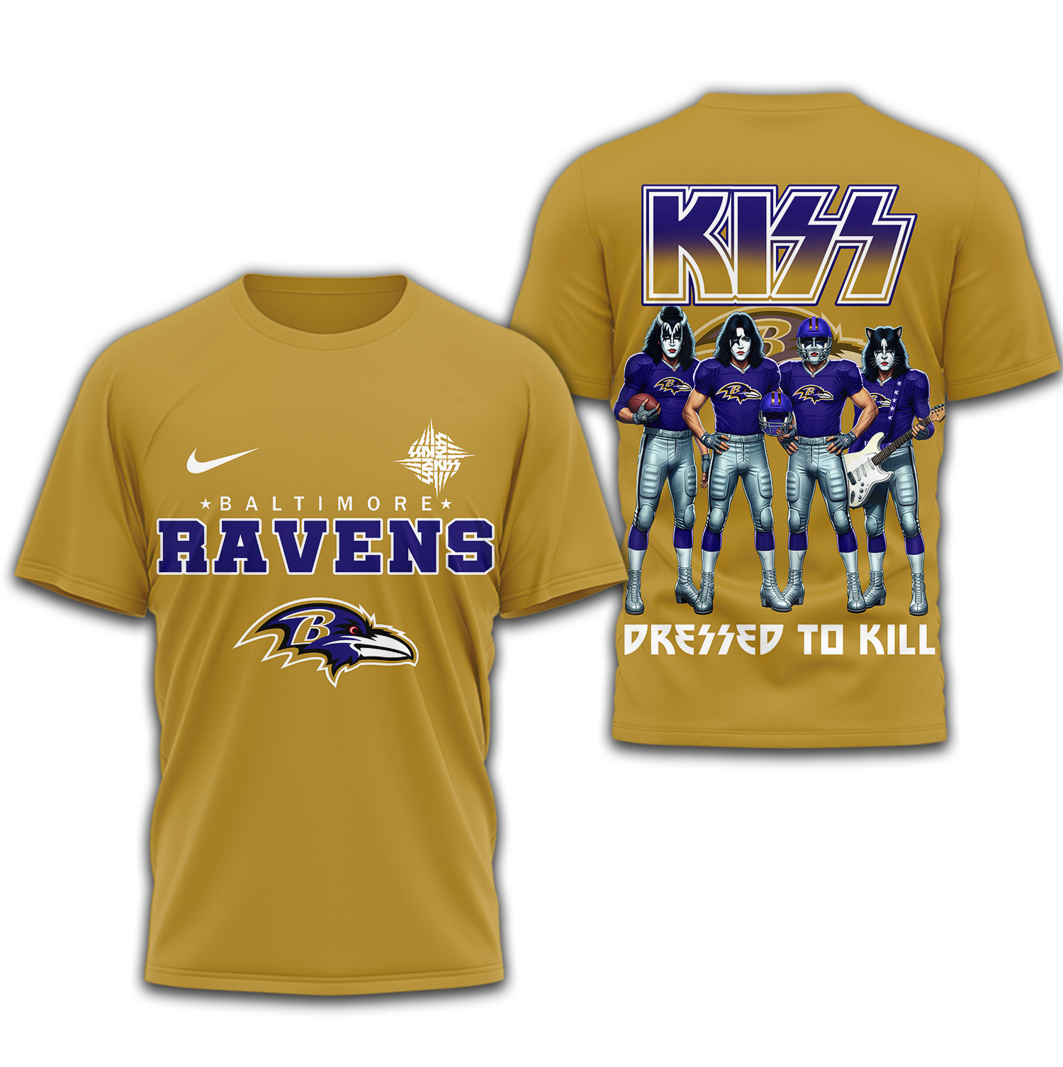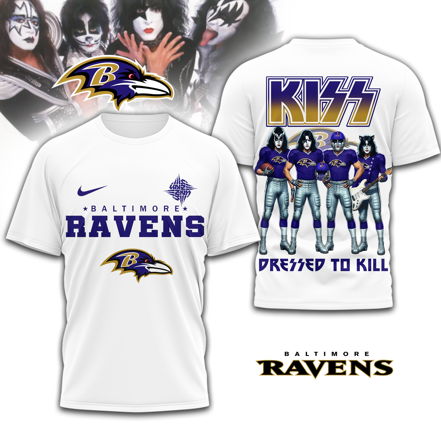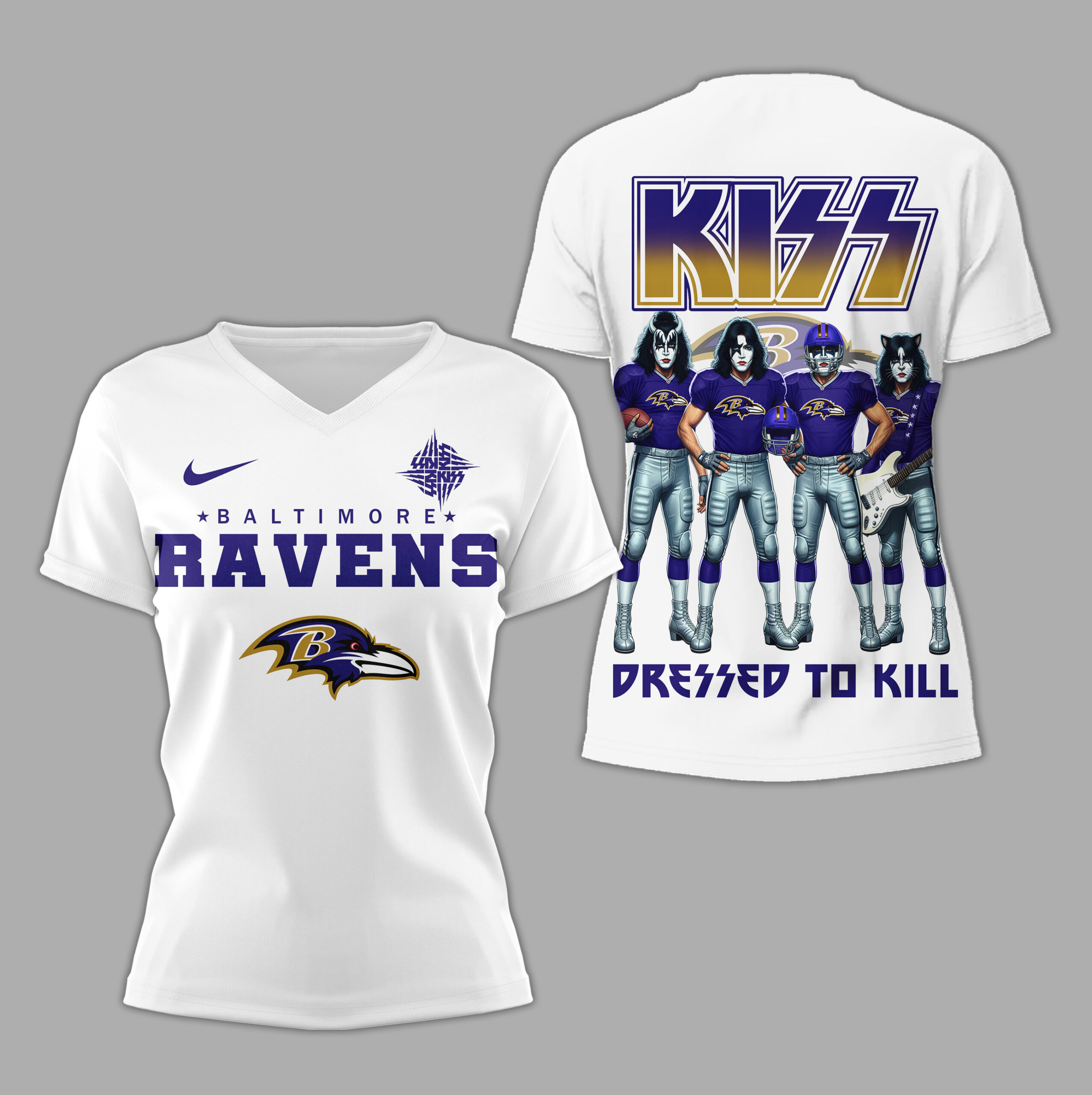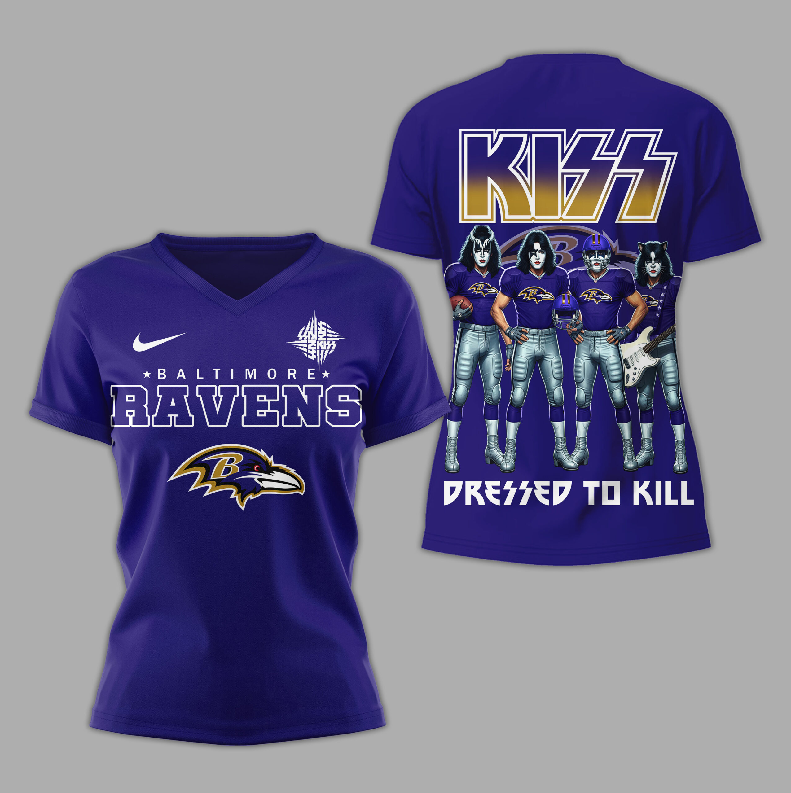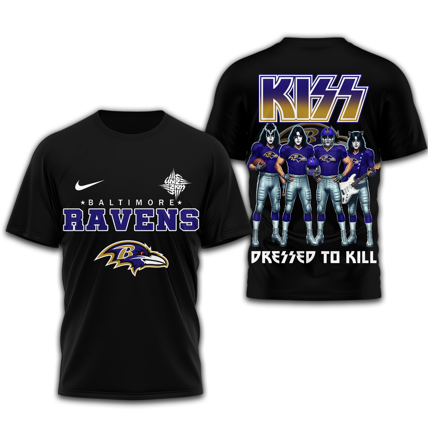 - This item: Baltimore Ravens | Premium NFL Dressed to Kill Kiss Band 3D Shirt Price range: $27.95 through $49.95
