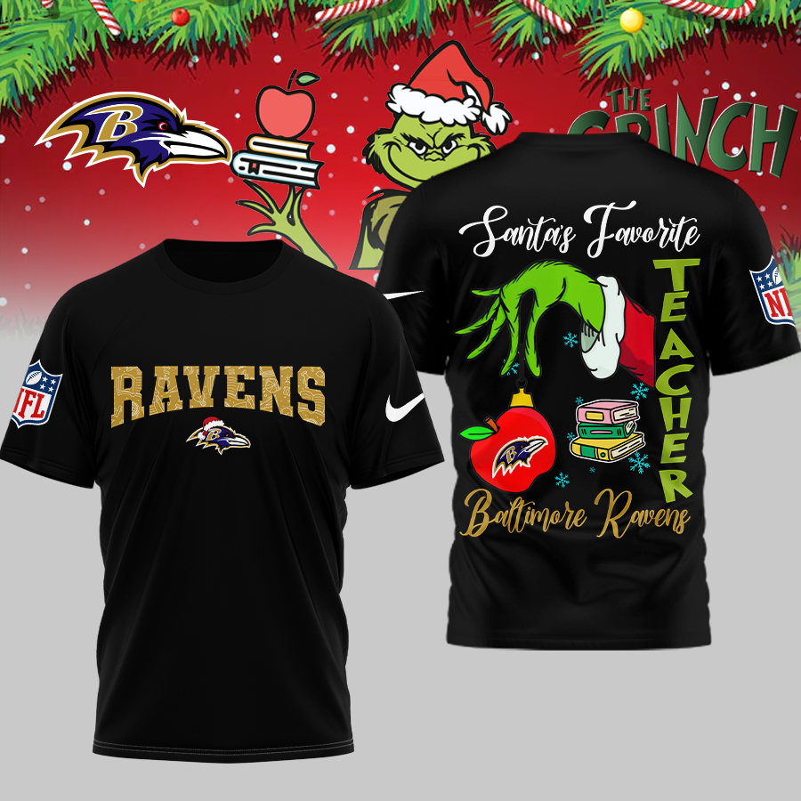 Baltimore Ravens | Premium NFL Festive Grinch Teacher 3D Shirt