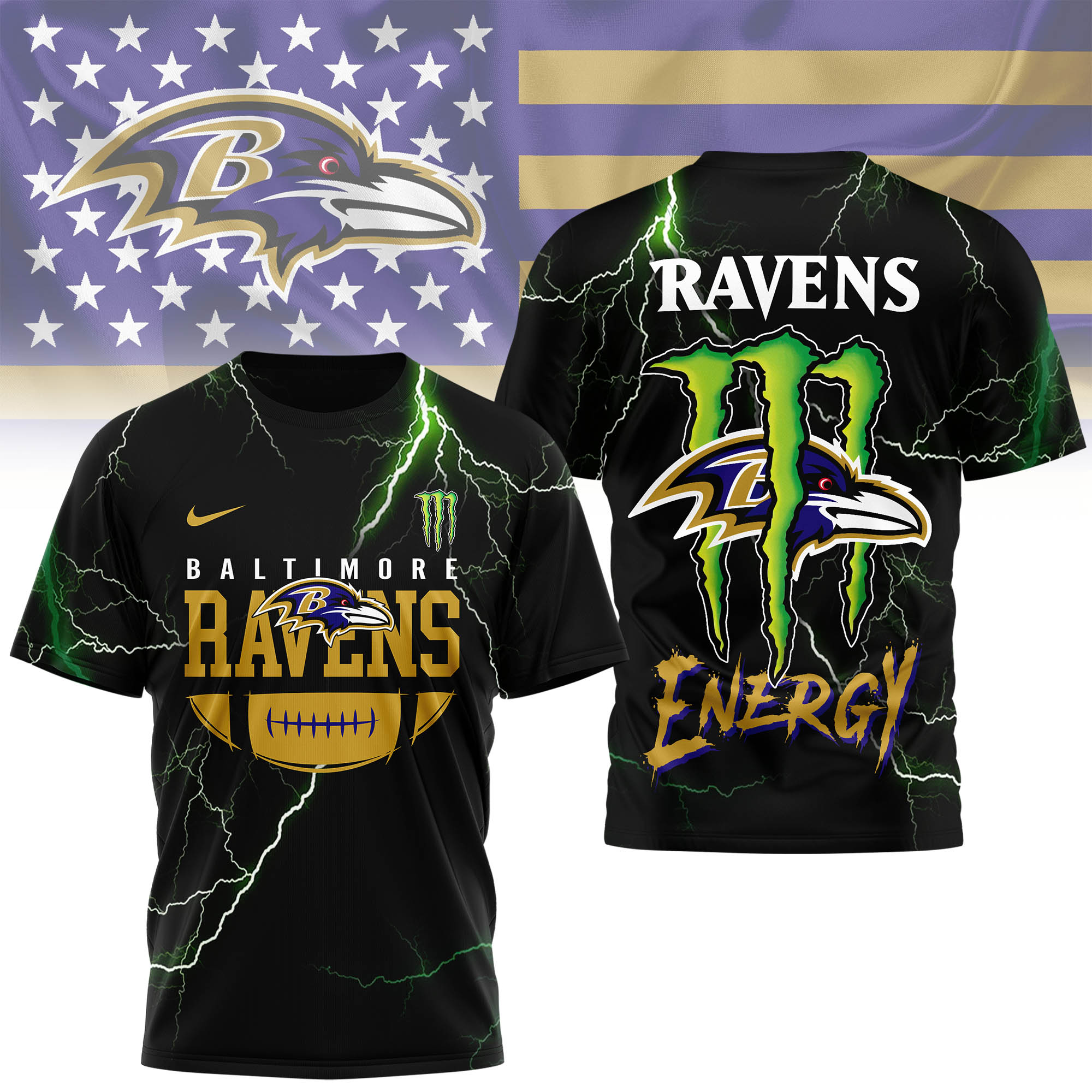 Baltimore Ravens | Premium NFL Monster Energy Graphic Shirt