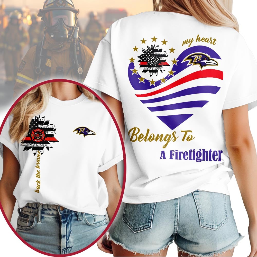Baltimore Ravens | Premium NFL My Heart Belongs To A Firefighter T-shirt