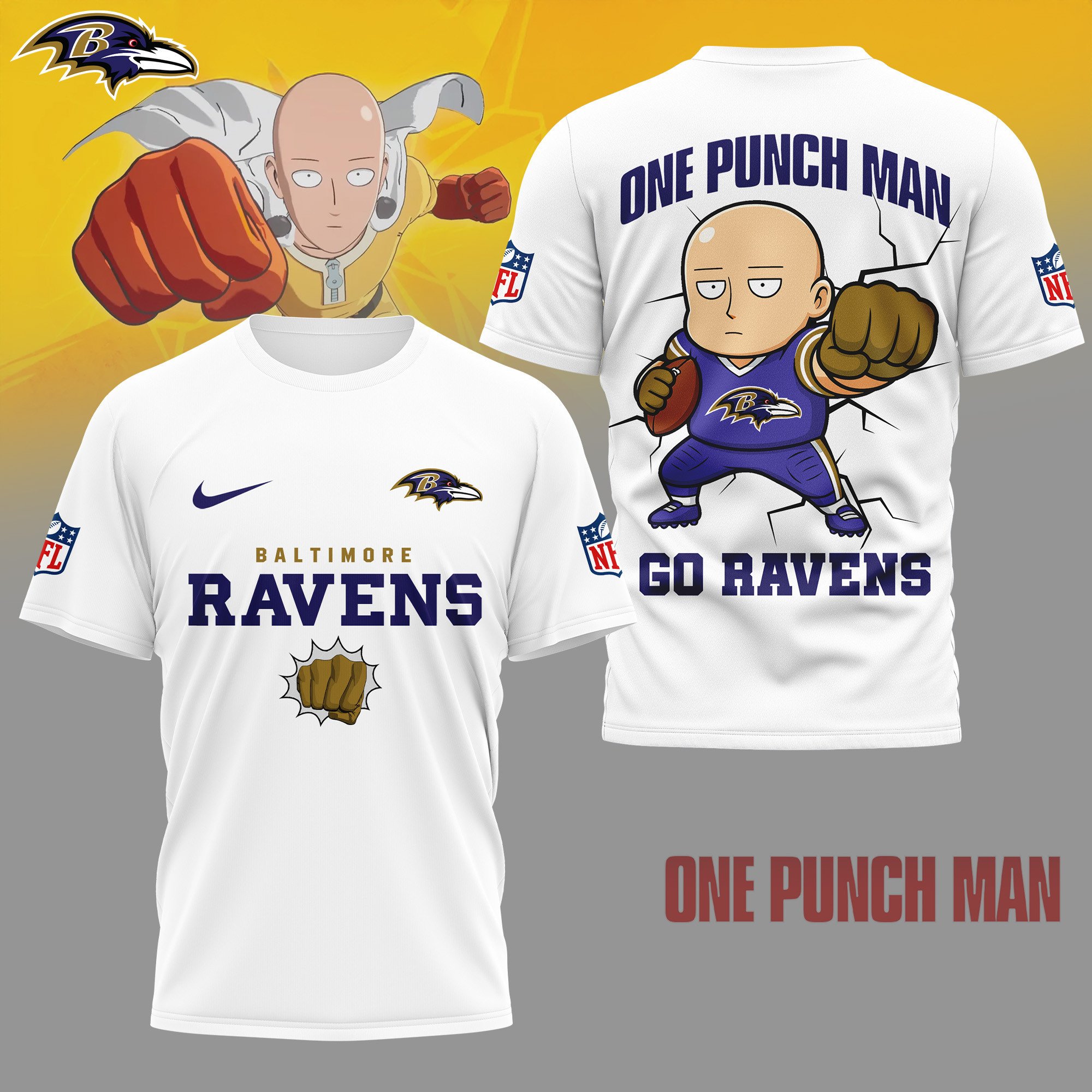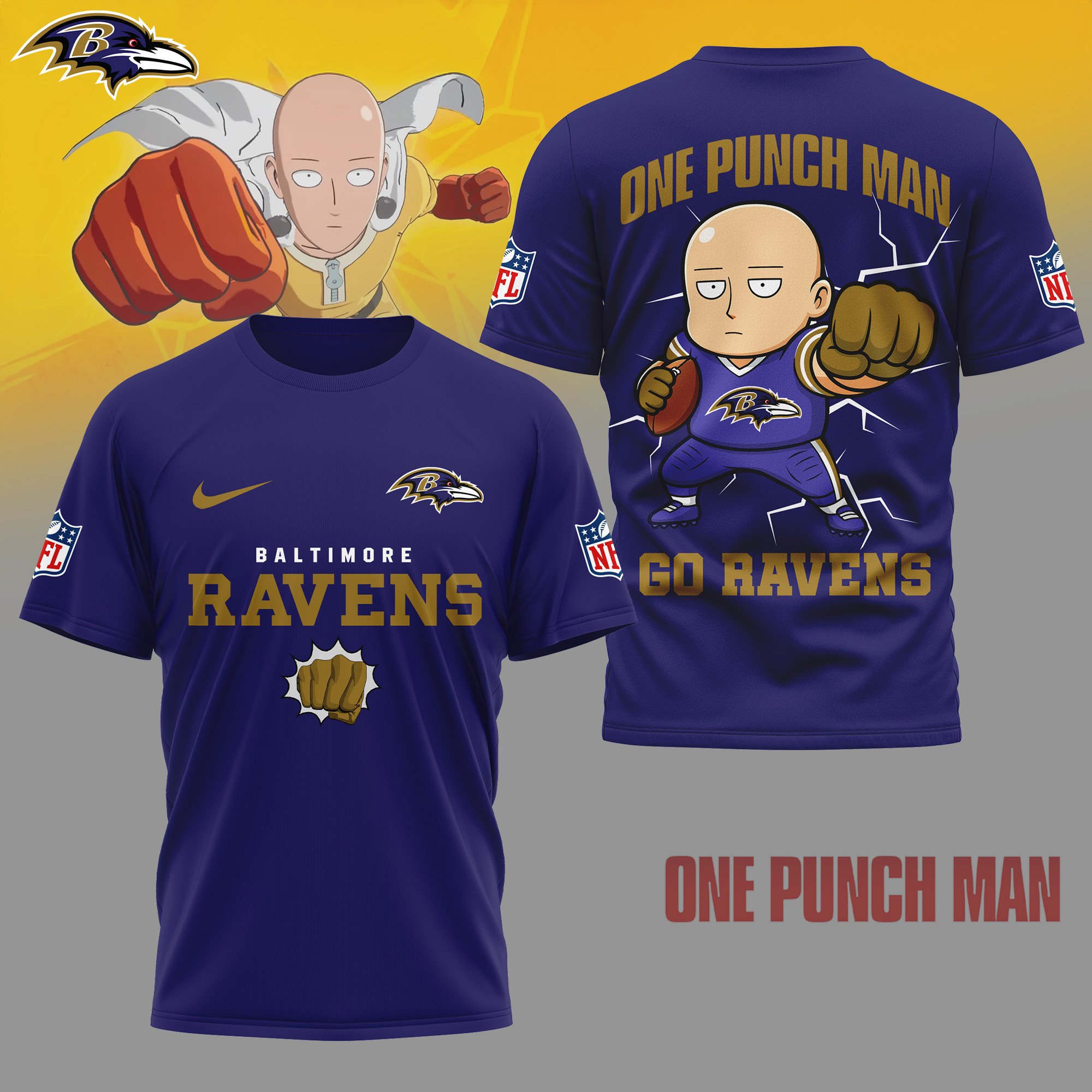 Baltimore Ravens | Premium NFL One Punch Man Fan 3D Shirt
