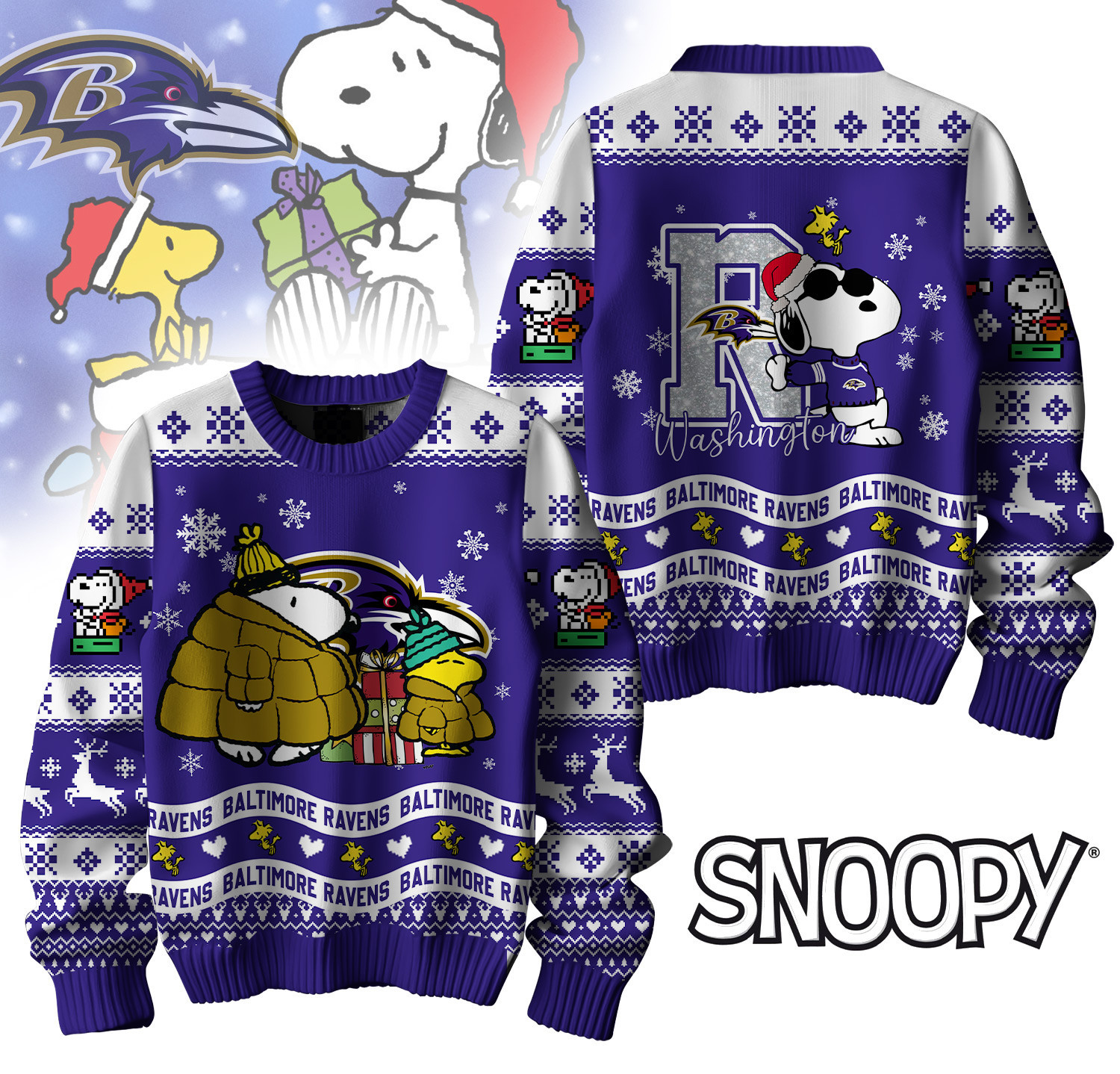 Baltimore Ravens | Premium NFL Peanuts Snoopy Ugly Sweater