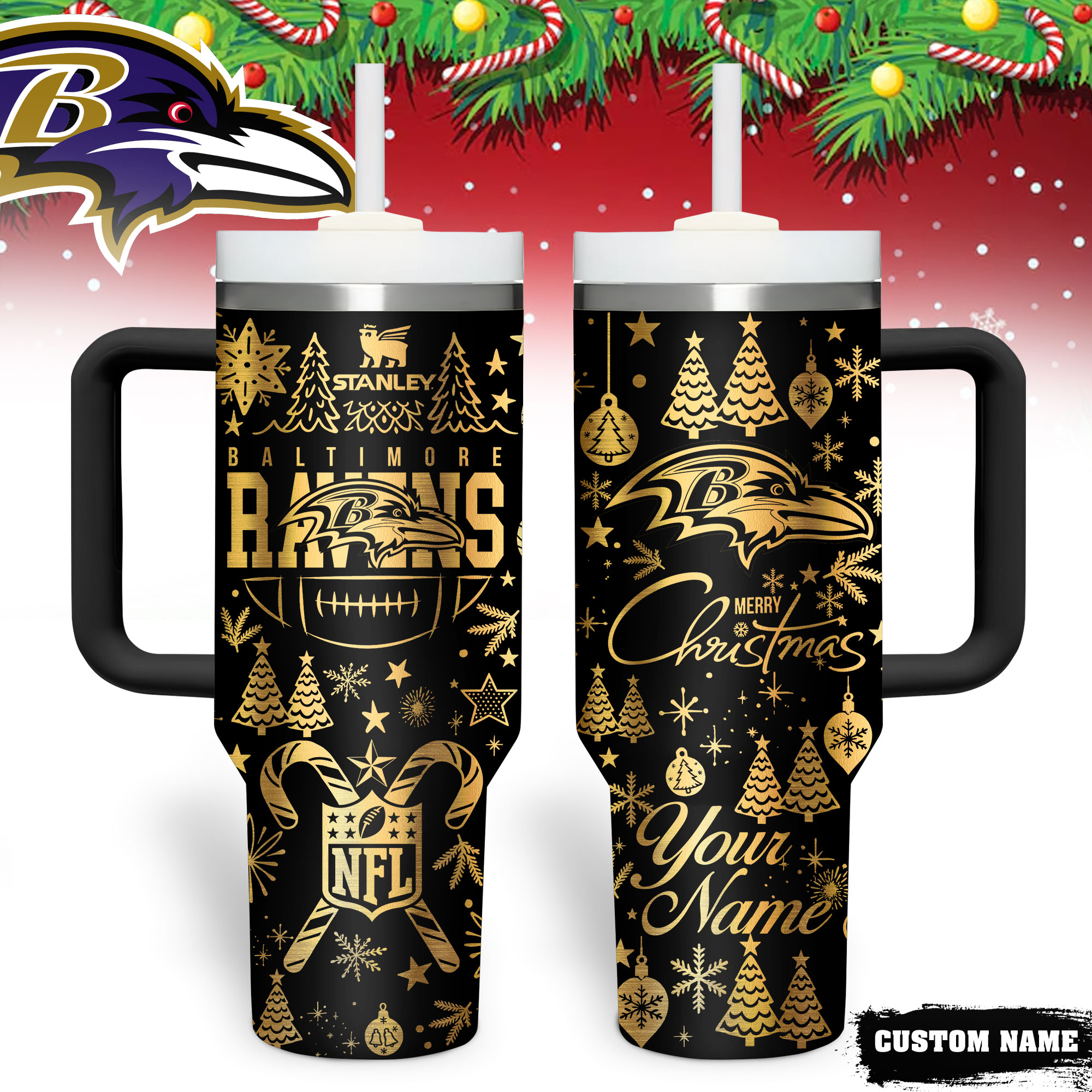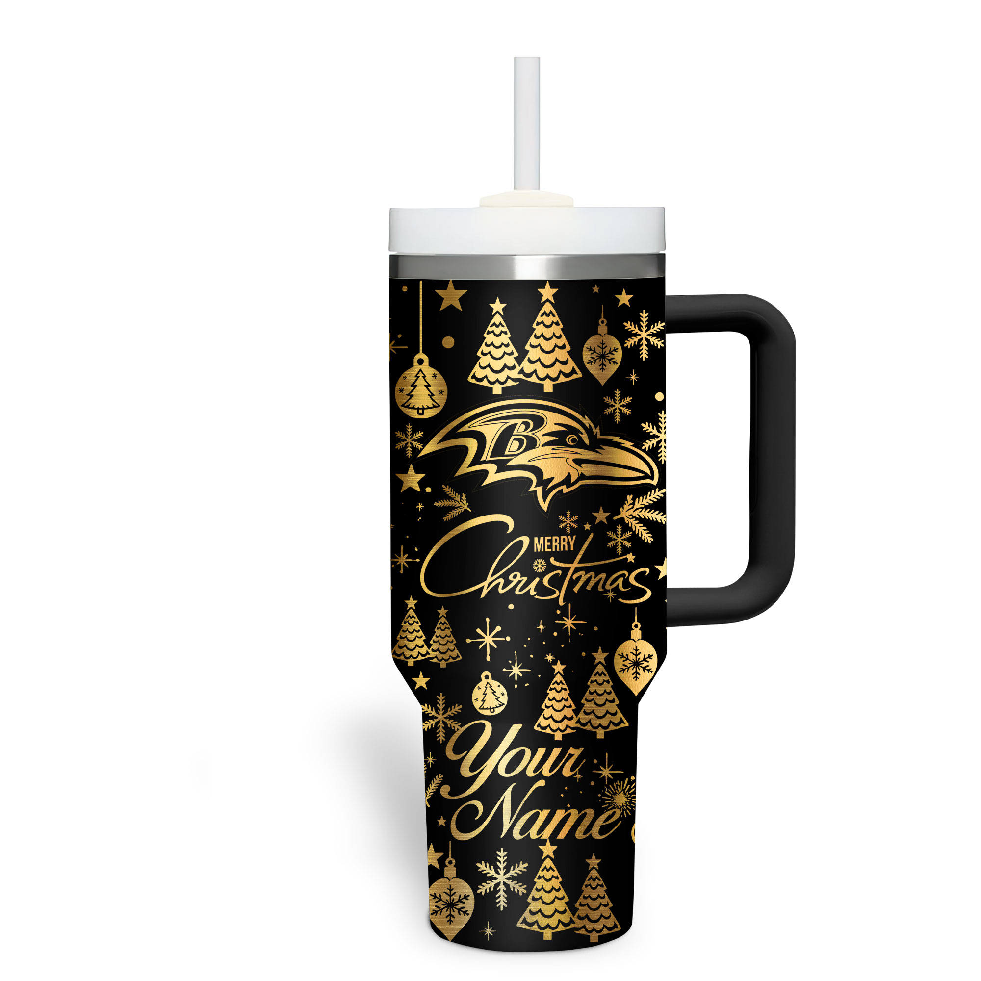 Baltimore Ravens | Premium NFL Personalized Holiday Gold Tumbler 40oz