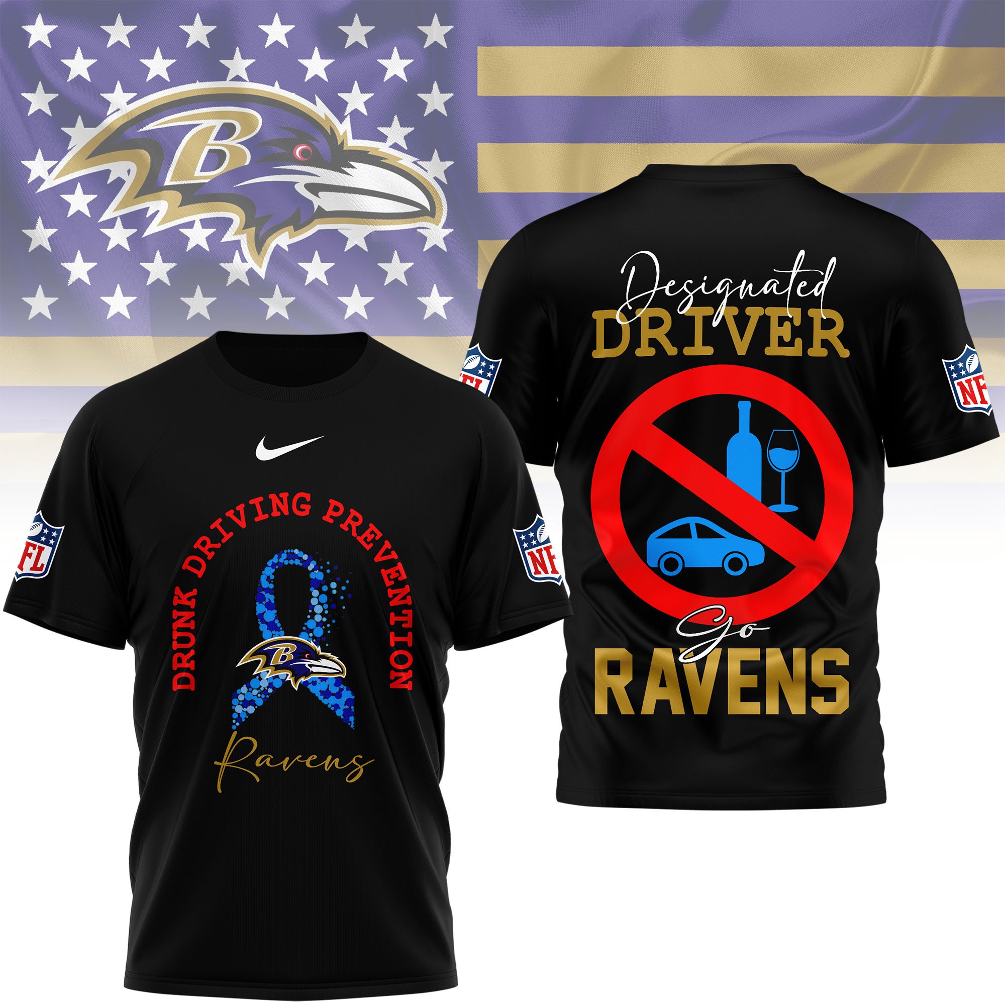 Baltimore Ravens | Premium NFL Safe Driving Awareness 3D Shirt