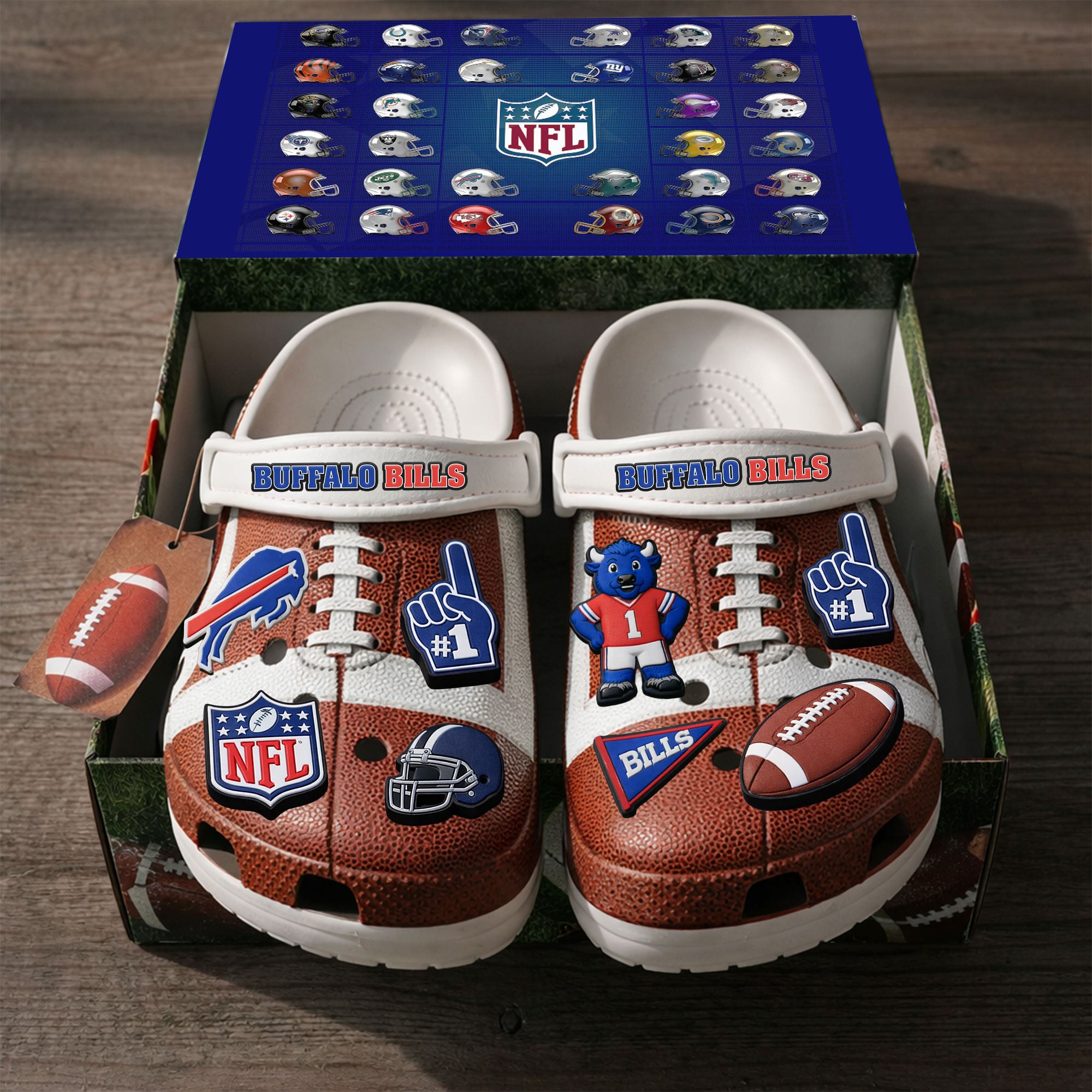 - This item: Buffalo Bills | PREMIUM NFL CLOGS WITH CHARMS Original price was: $119.99.$74.99Current price is: $74.99.