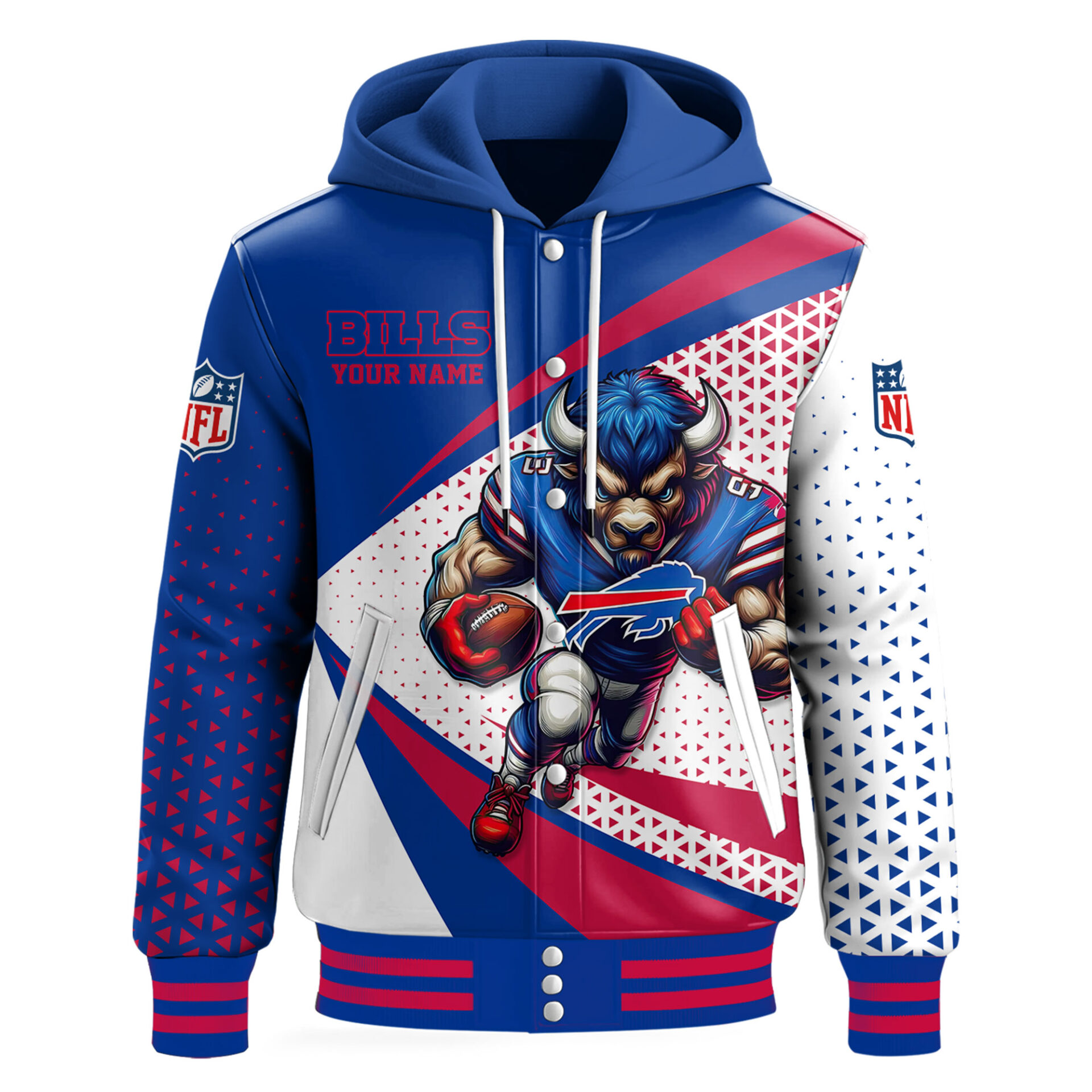 Categories: Buffalo Bills, NFL, Premium NFL Fan Cave Hooded Baseball Jacket