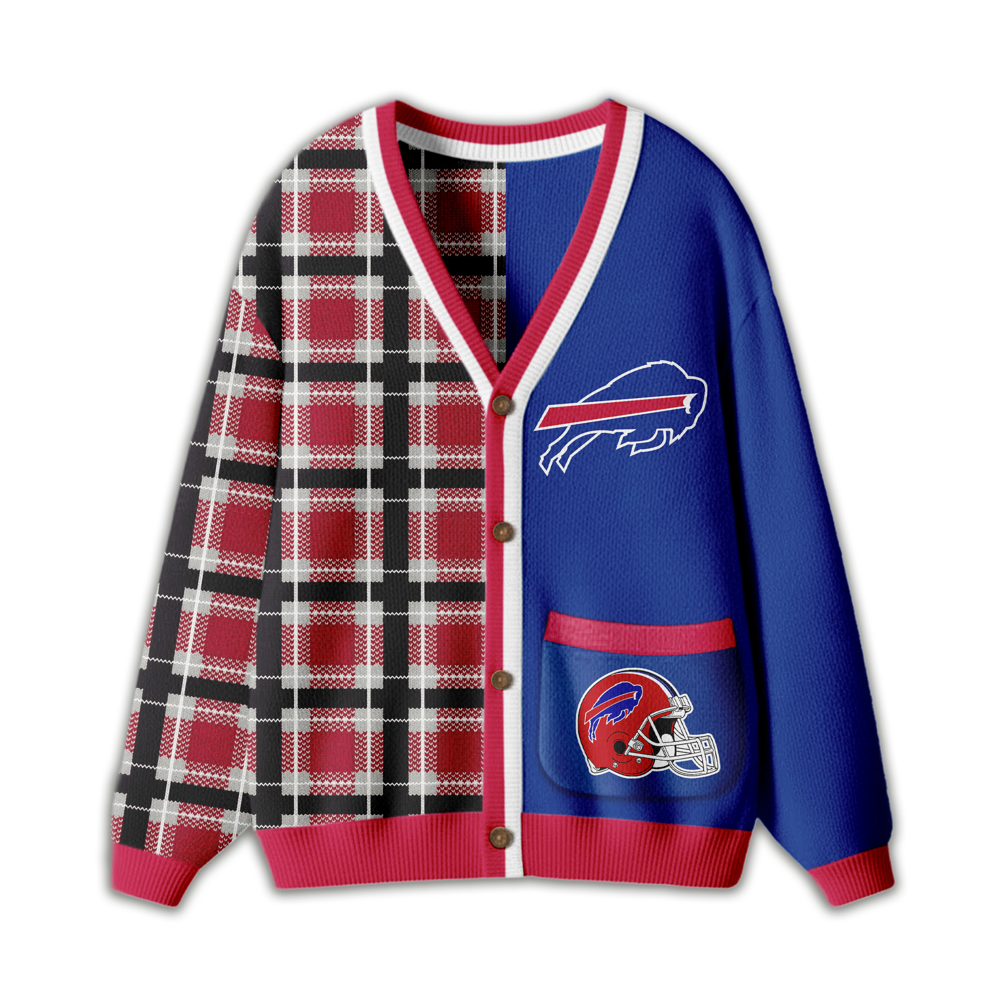 Buffalo Bills | Premium NFL Game Day Patchwork Cardigan with Printed Pocket Design