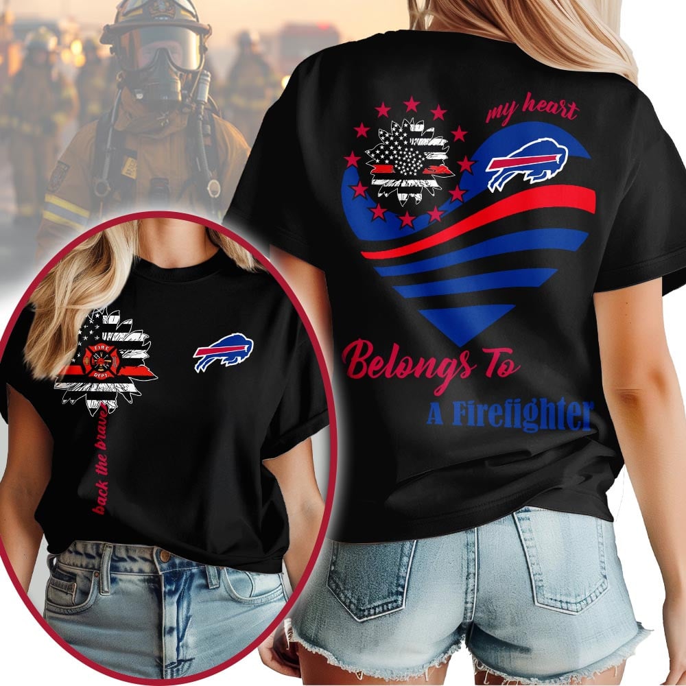 Buffalo Bills | Premium NFL My Heart Belongs To A Firefighter T-shirt