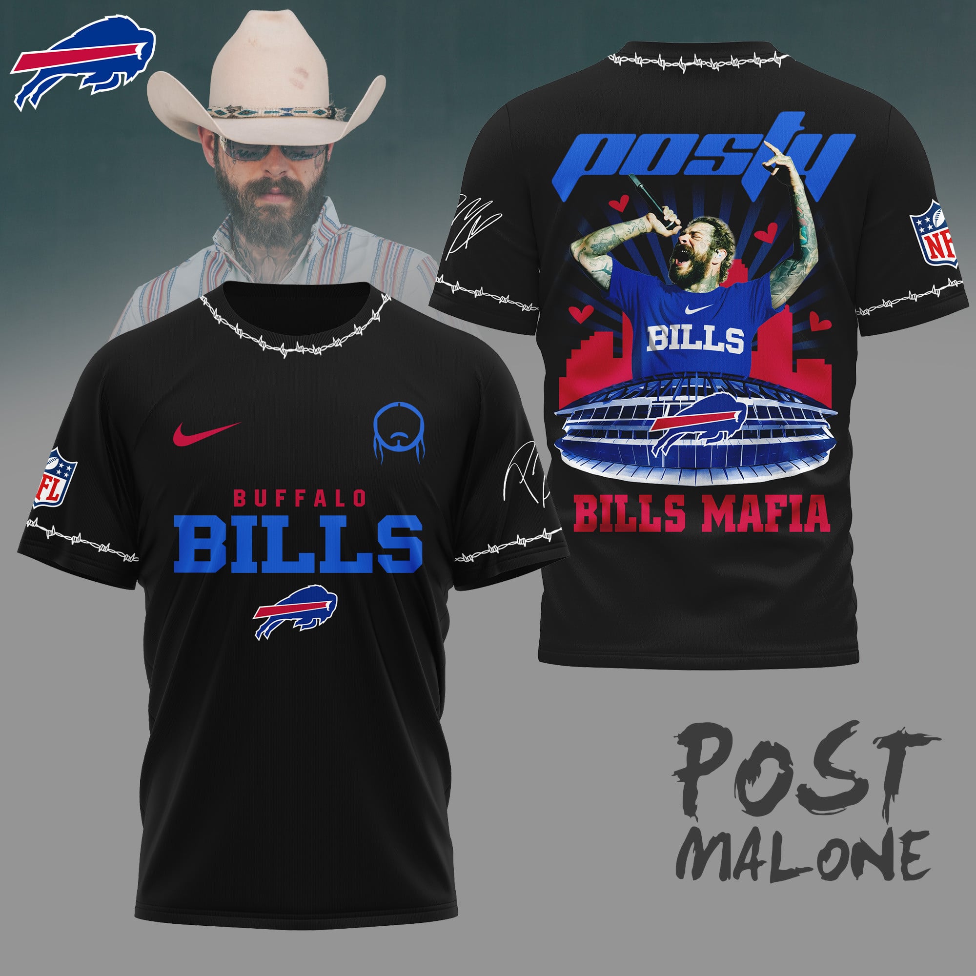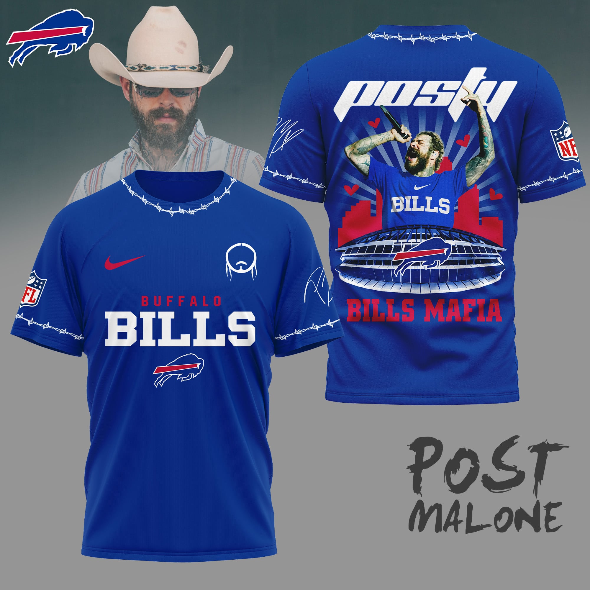 Buffalo Bills | Premium NFL Post Malone Fan 3D Shirt