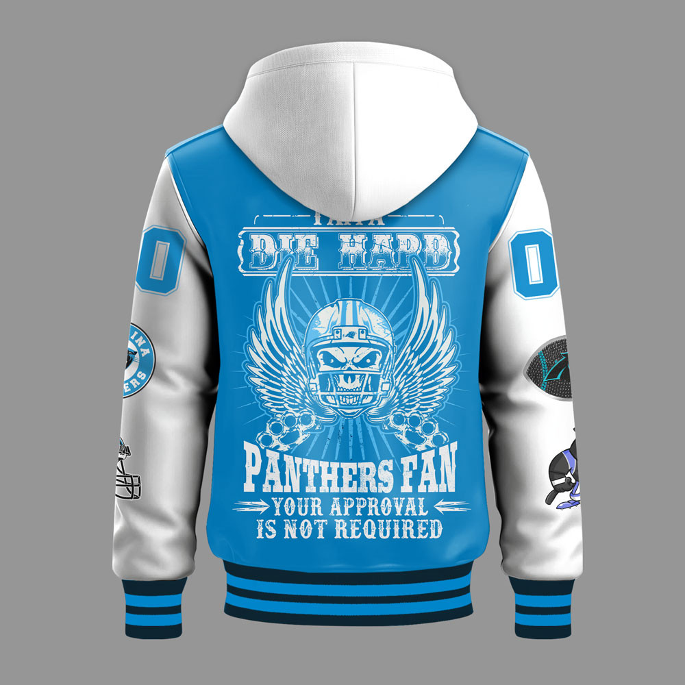 Categories: Carolina Panthers, NFL, Premium NFL Die Hard Fan Hooded Baseball Jacket