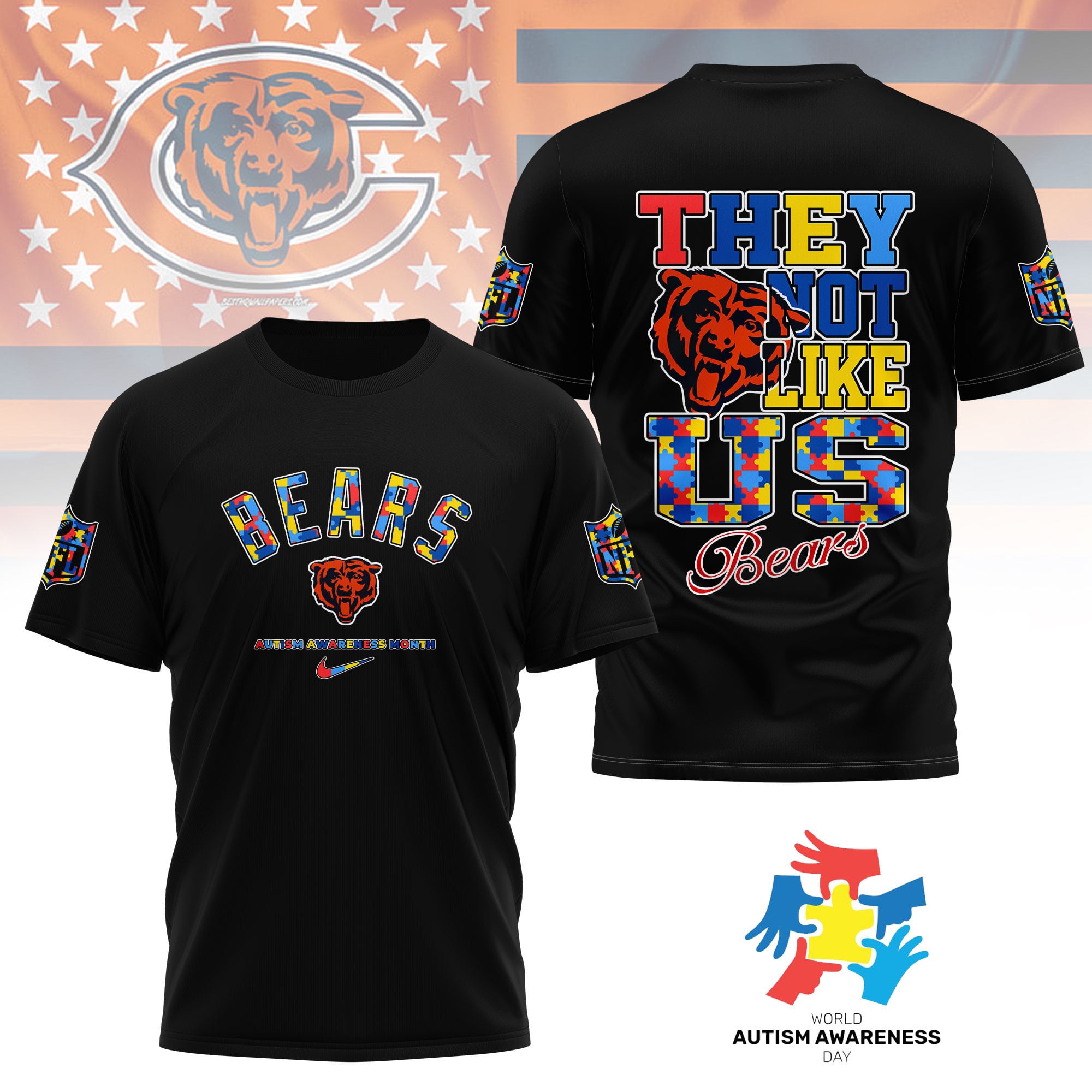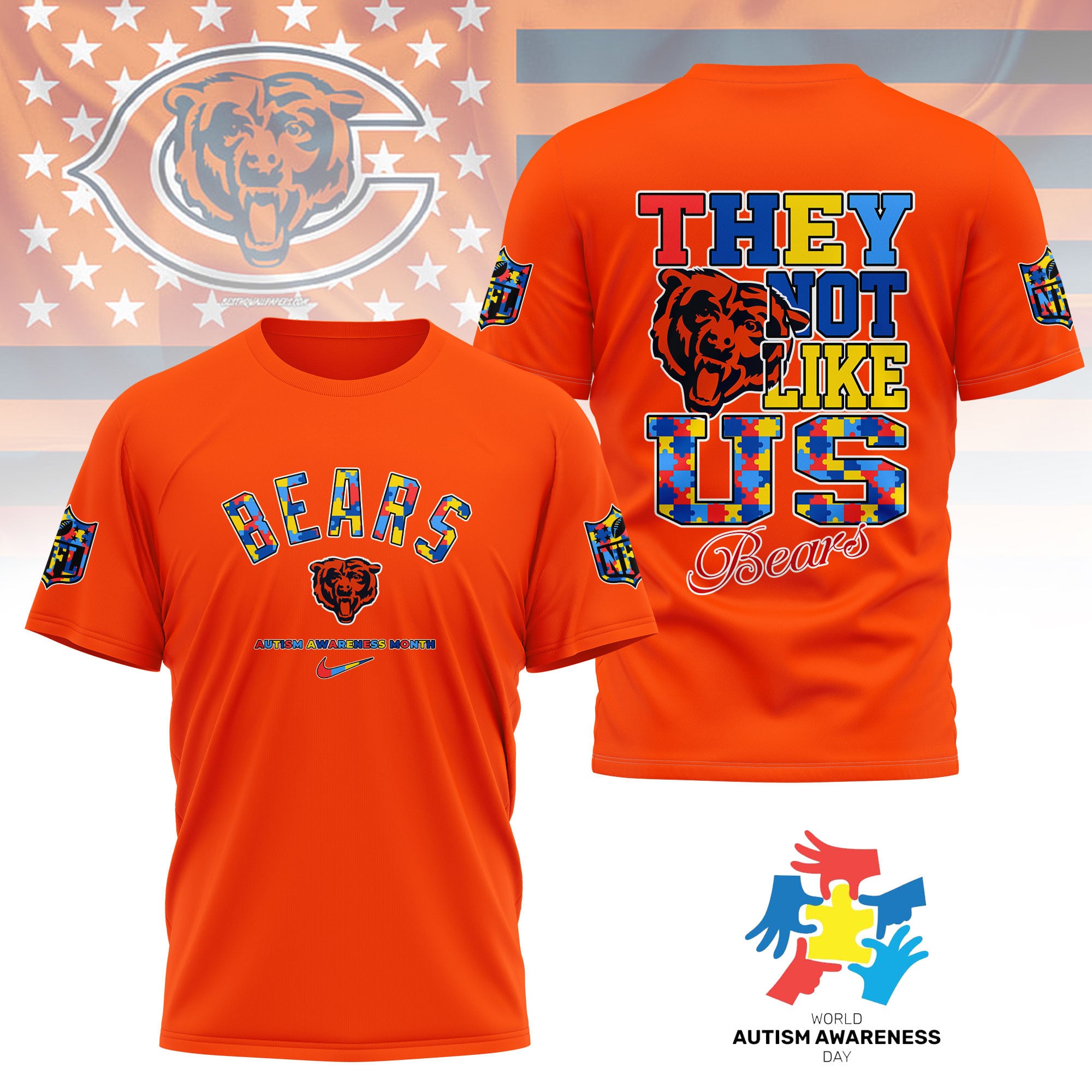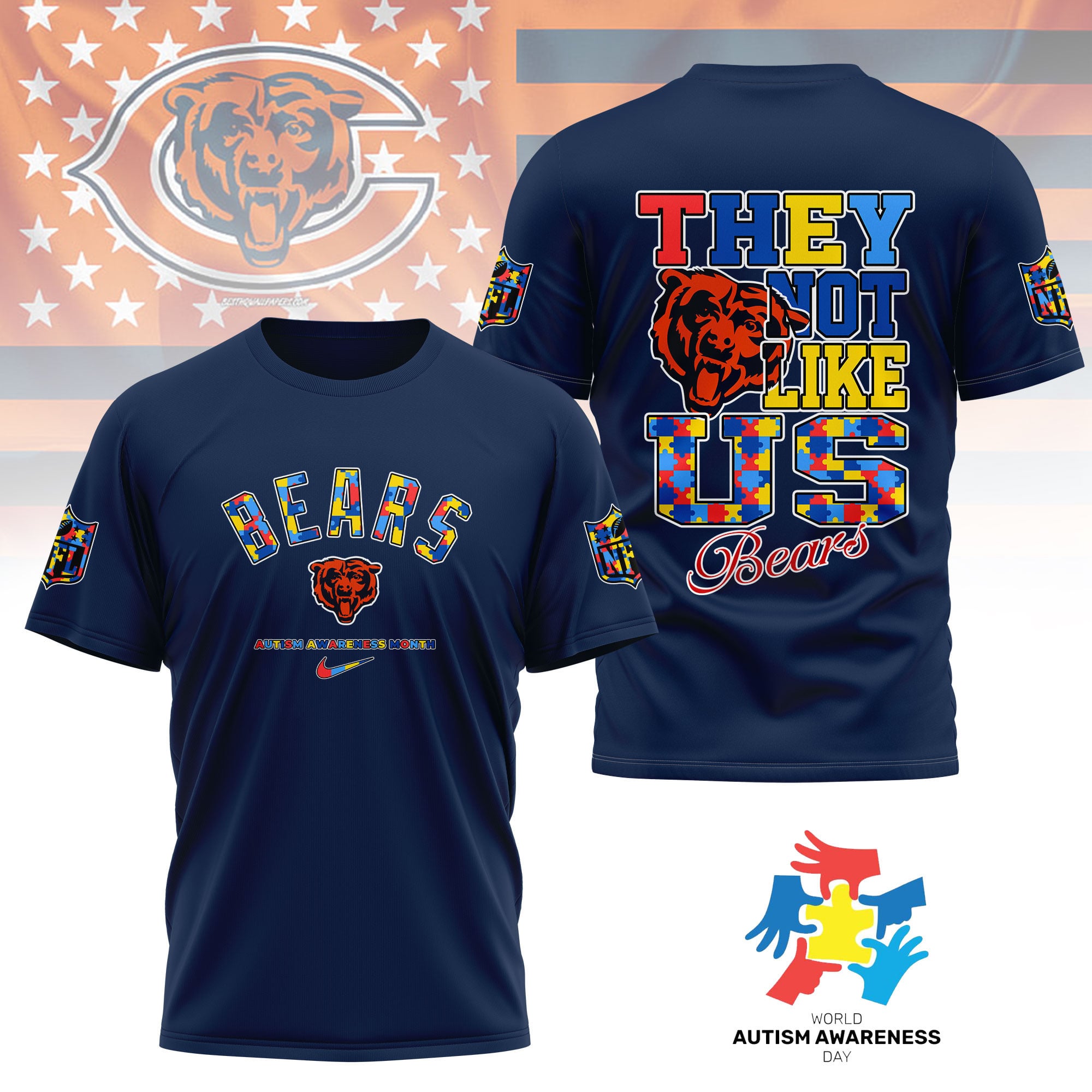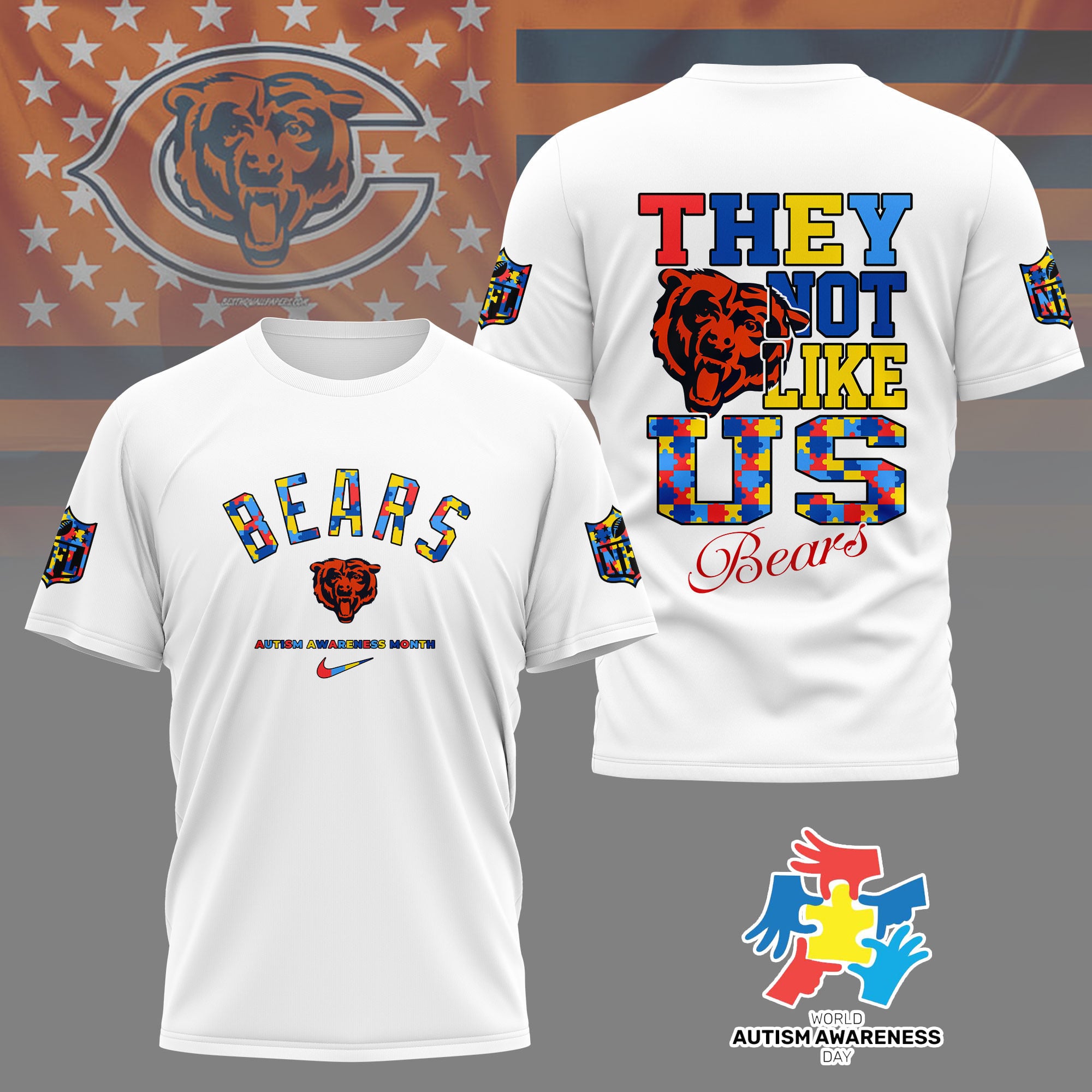 Chicago Bears | Premium NFL Autism Awareness Month 3D Shirt
