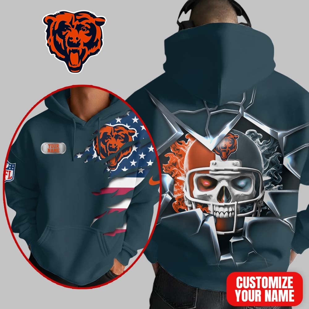 Chicago Bears | Premium NFL Customizable Skull Hoodie