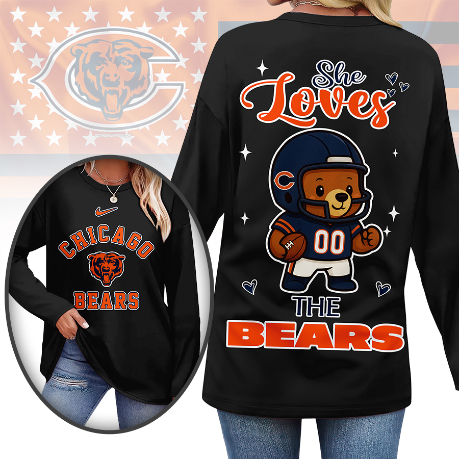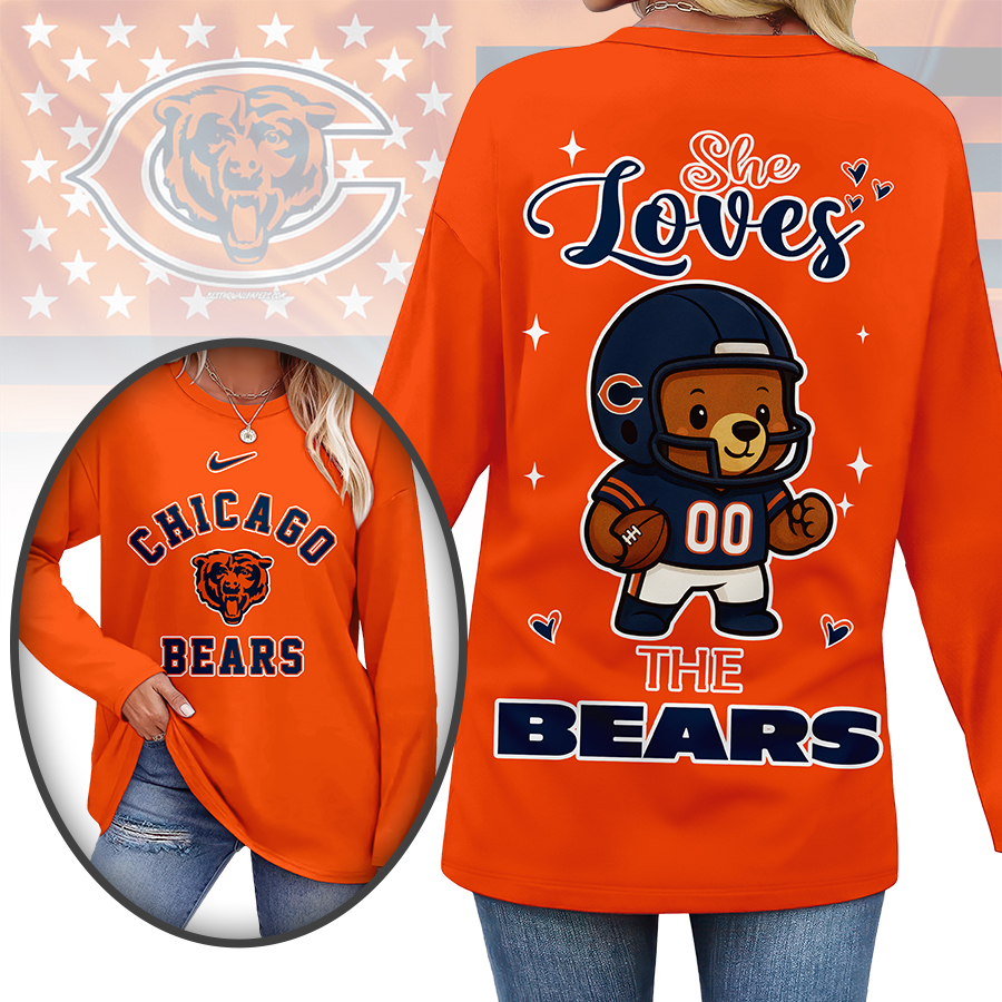 Chicago Bears | Premium NFL Cute Mascot Long Sleeve Shirts for Women