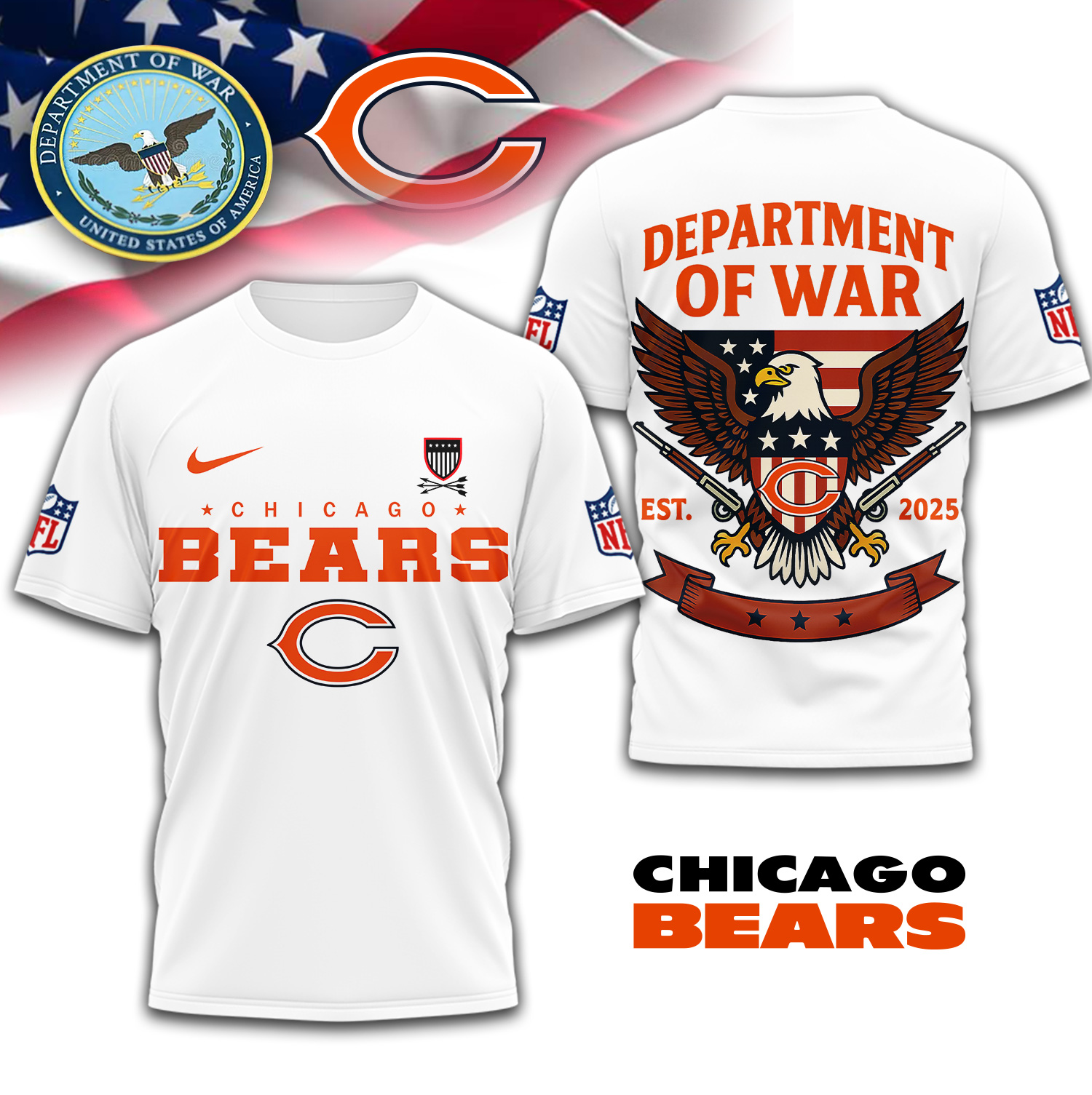 Chicago Bears | Premium NFL Department Of War 3D Shirt