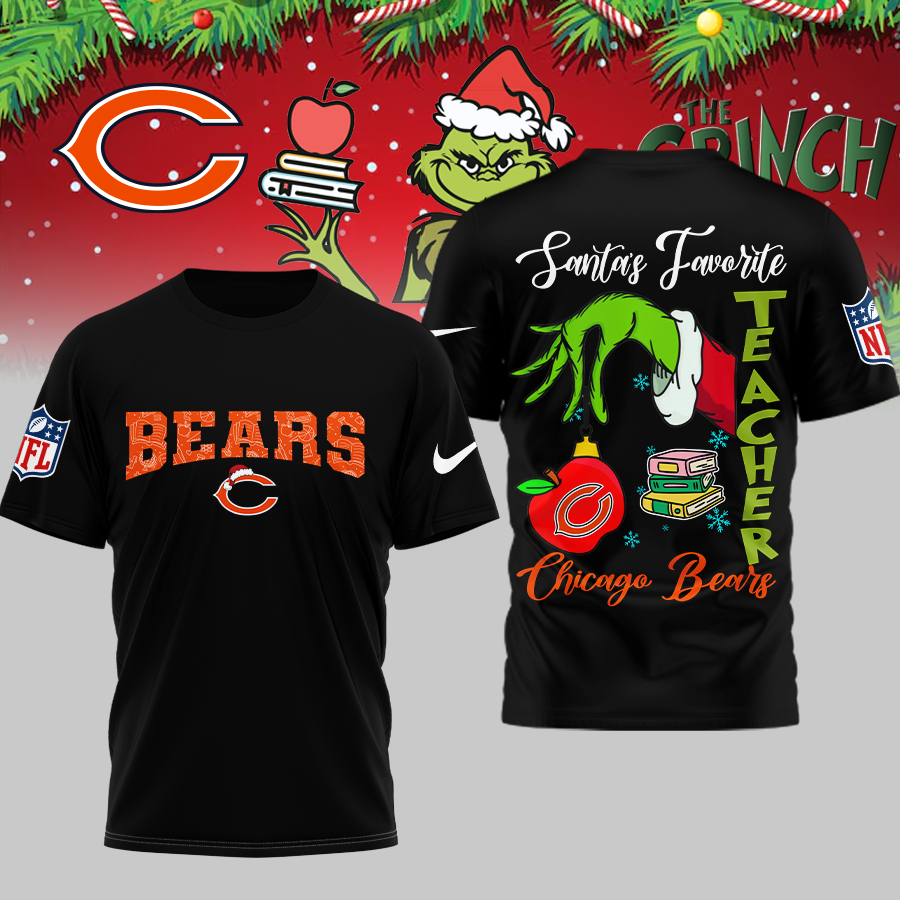 Chicago Bears | Premium NFL Festive Grinch Teacher 3D Shirt