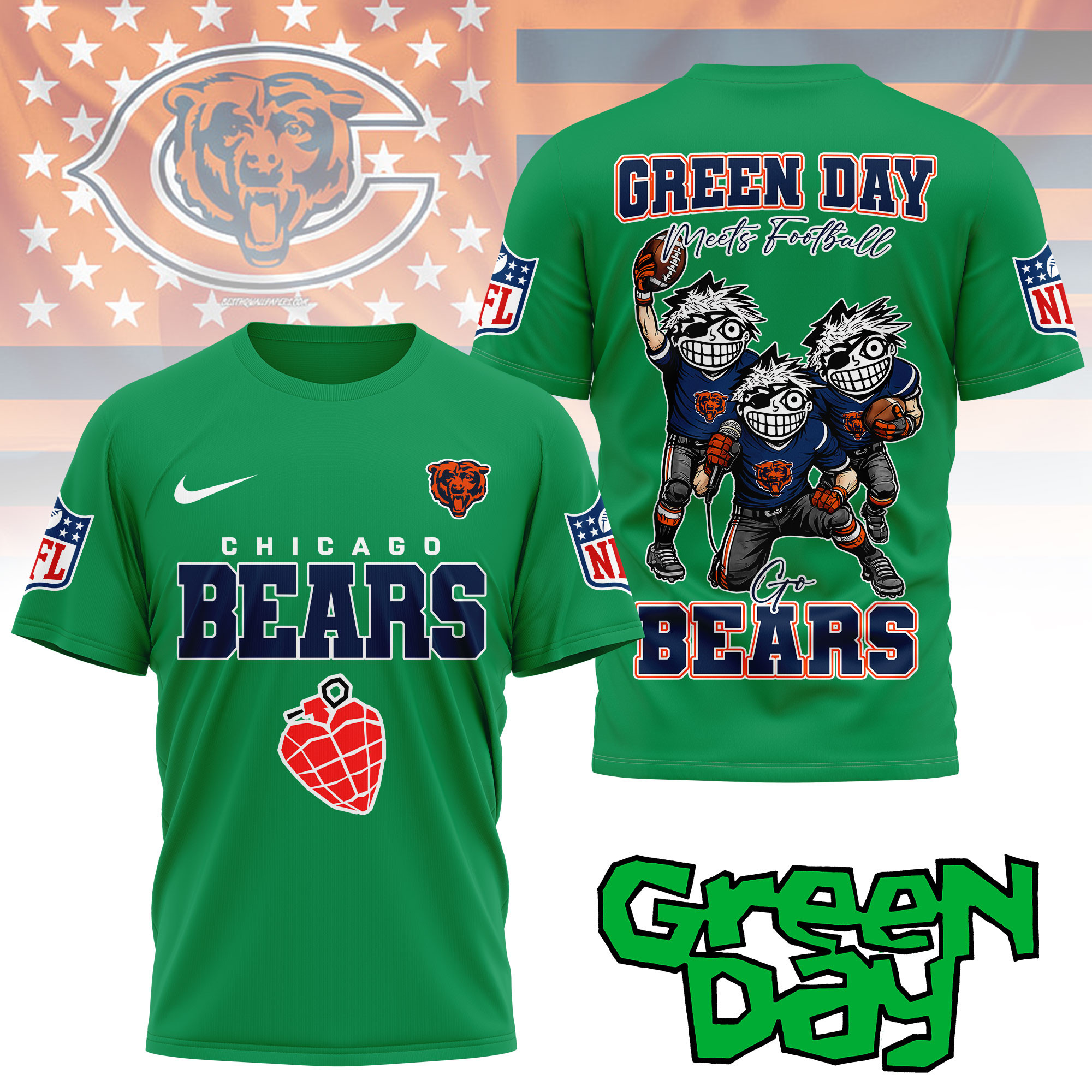 Chicago Bears | Premium NFL Green Day Fan 3D Shirt NY