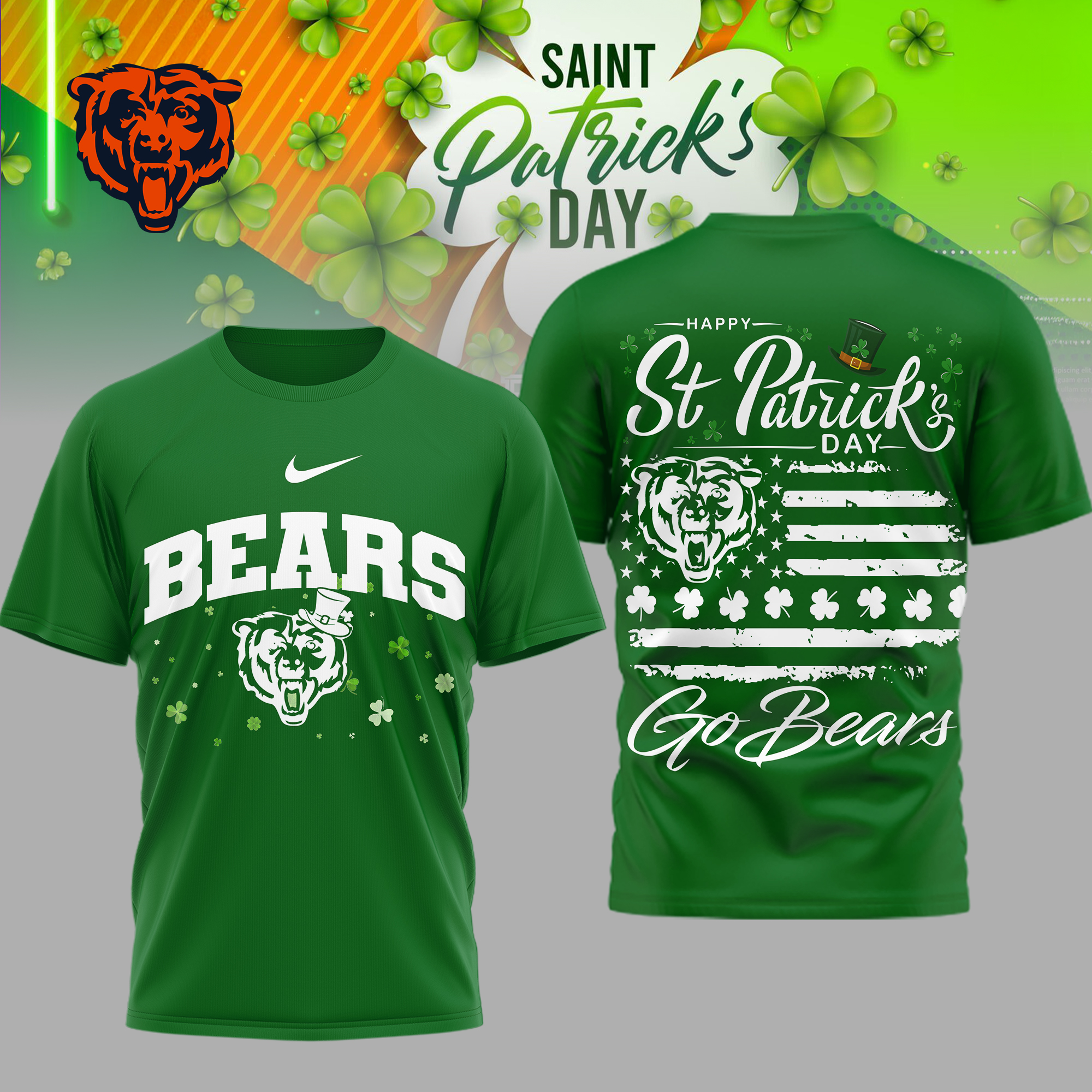 Chicago Bears | Premium NFL St. Patricks Day 3D Shirt