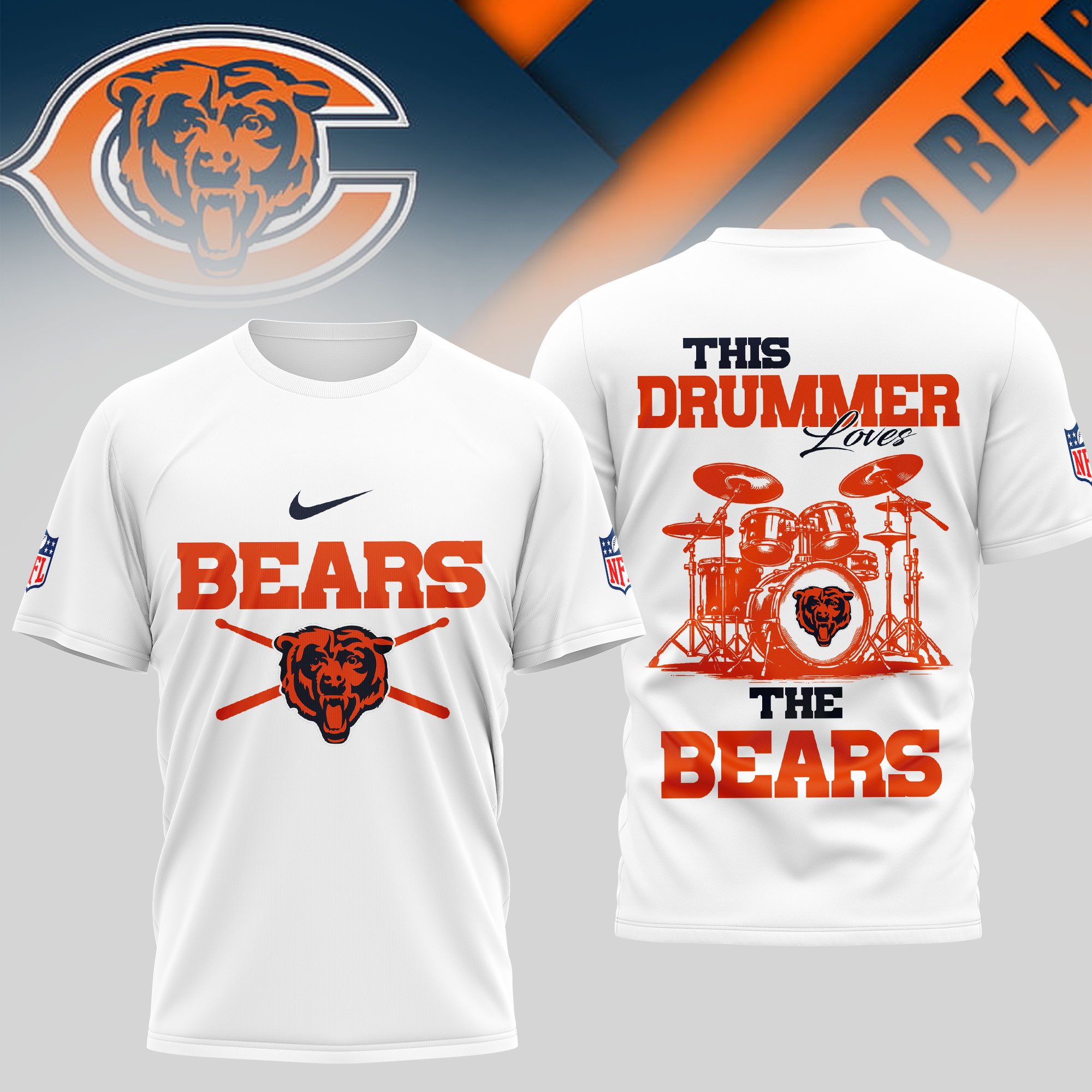 Chicago Bears | Premium NFL This Drummer Loves Football 3D Shirt