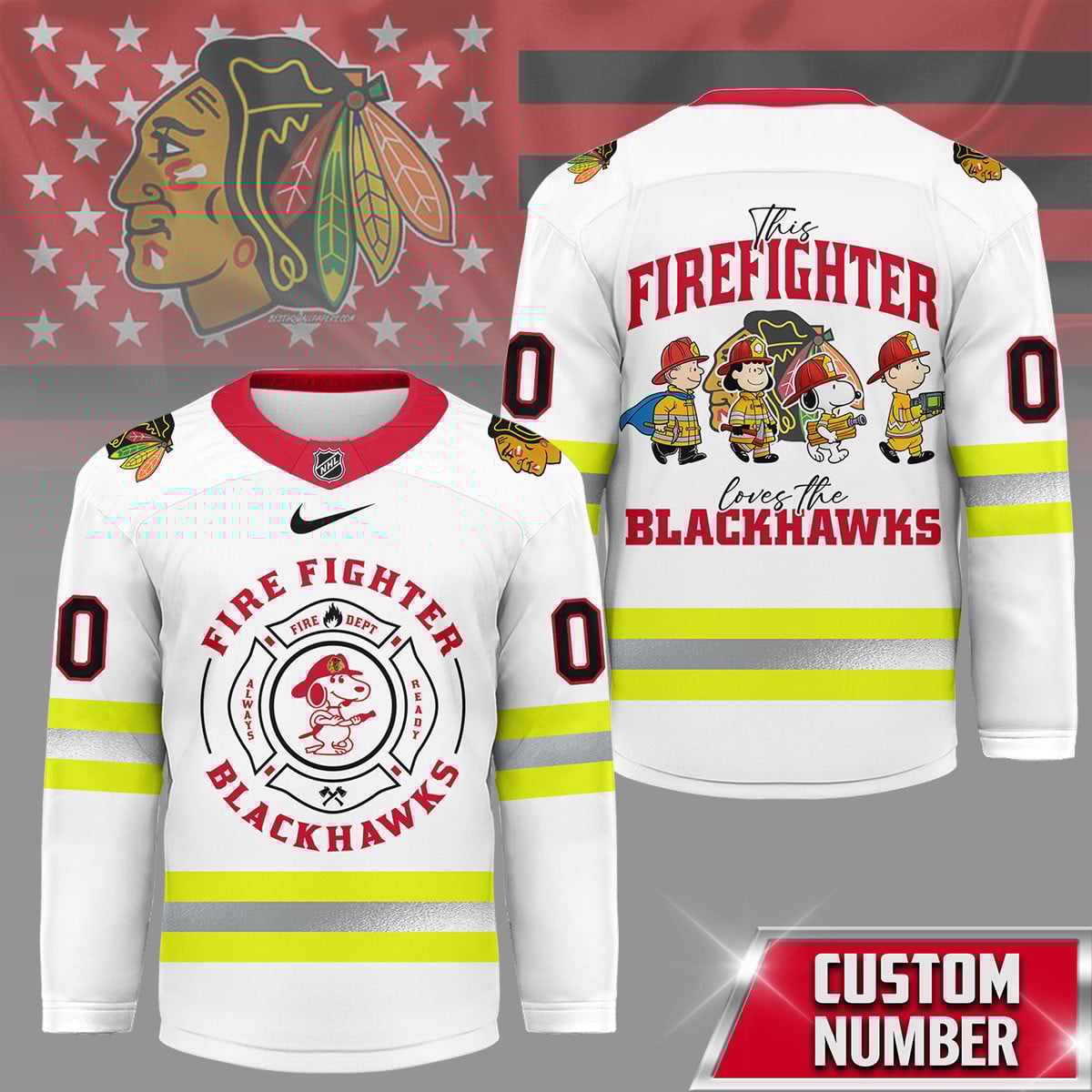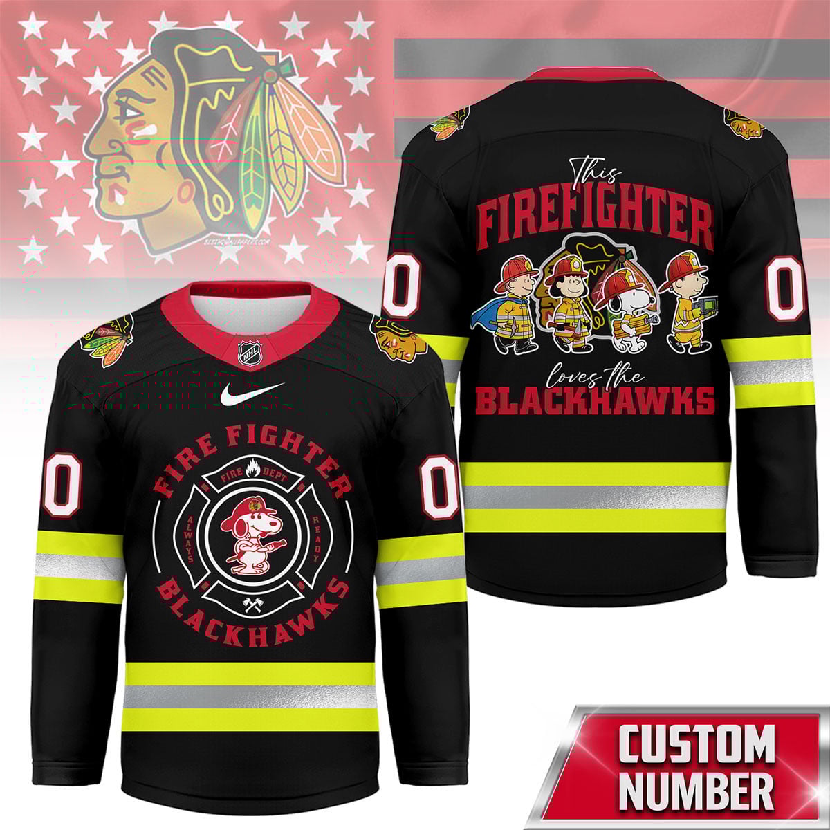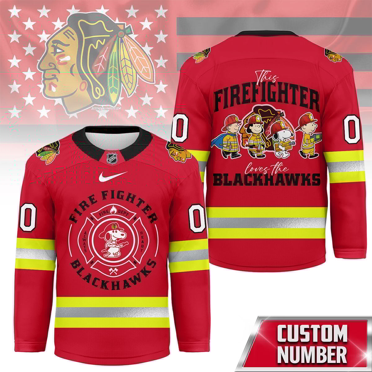 Chicago Blackhawks | Premium NHL Snoopy Firefighter Hockey Jersey