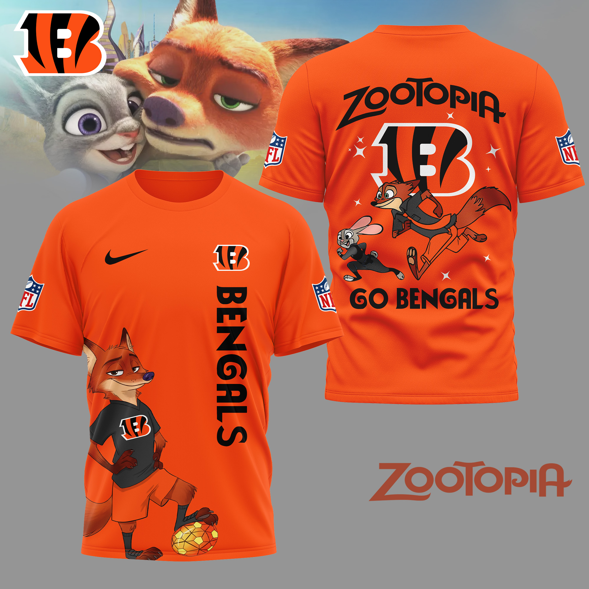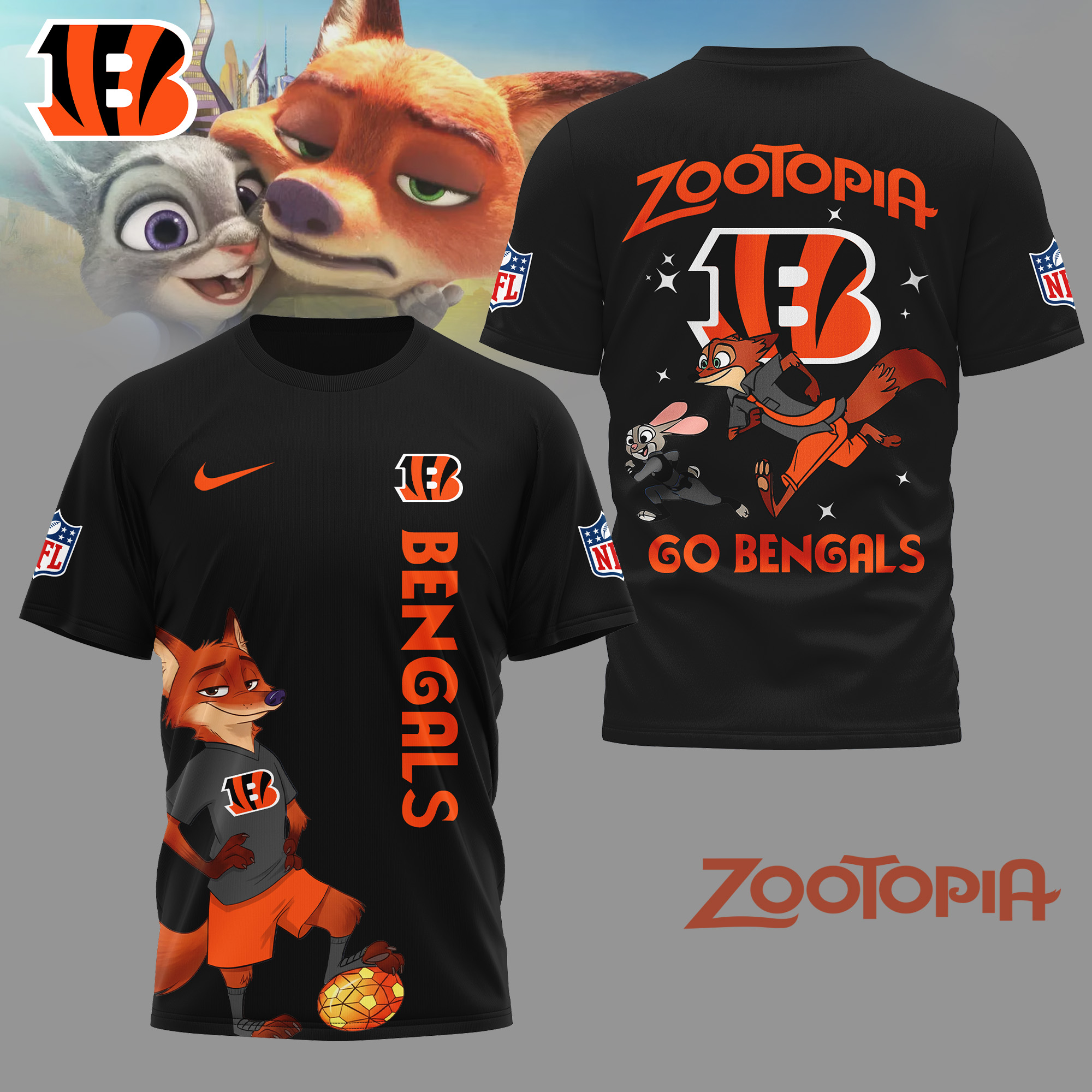 Cincinnati Bengals | Premium NFL and Zootopia Fan 3D Shirt