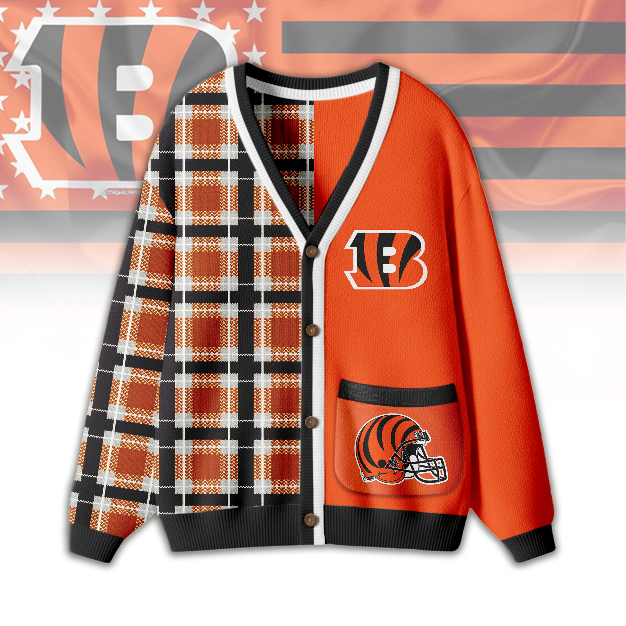 Cincinnati Bengals | Premium NFL Game Day Patchwork Cardigan with Printed Pocket Design