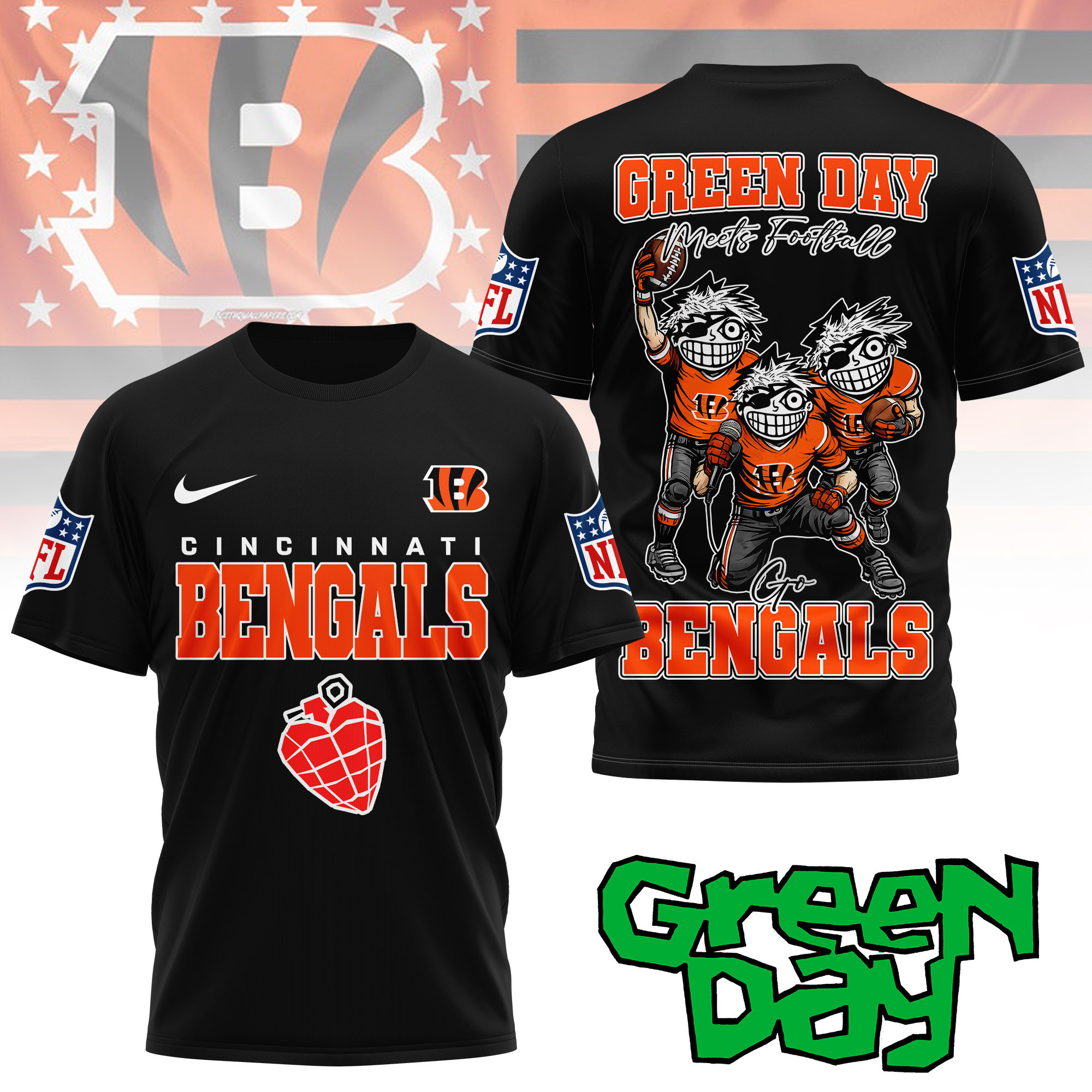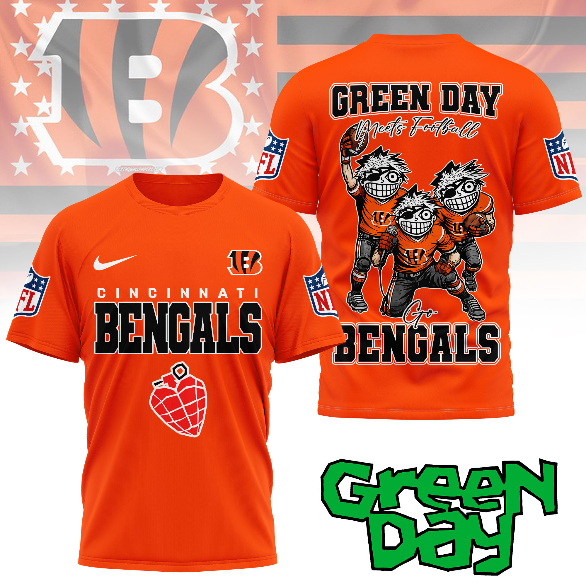 Cincinnati Bengals | Premium NFL Green Day Fan 3D Shirt NY
