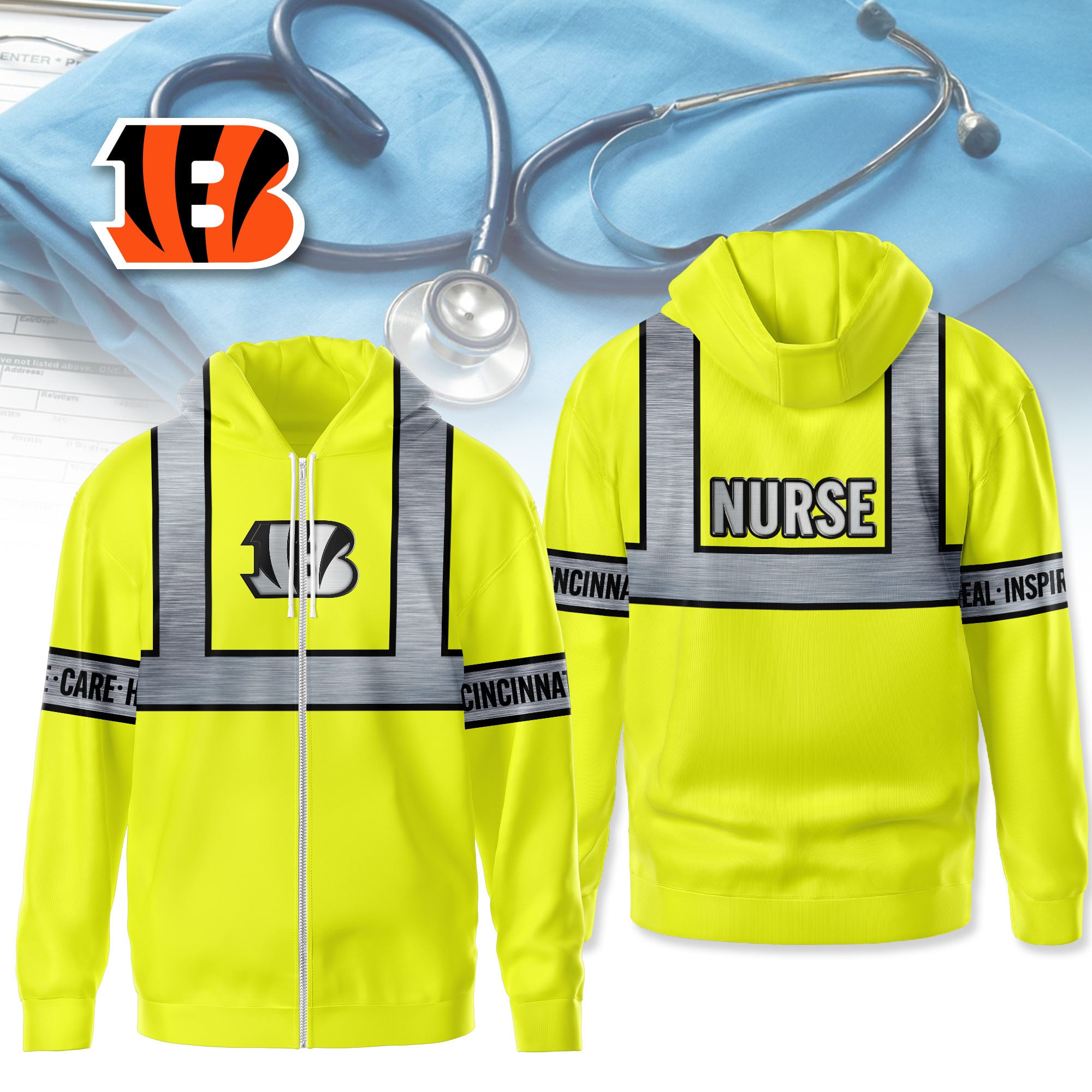 Cincinnati Bengals | Premium NFL Nurse Safety Hi Vis Hoodie