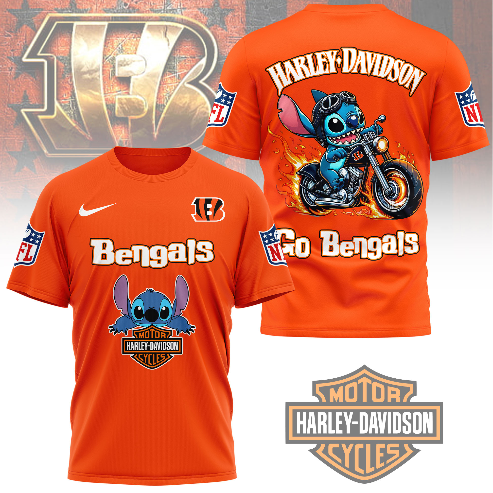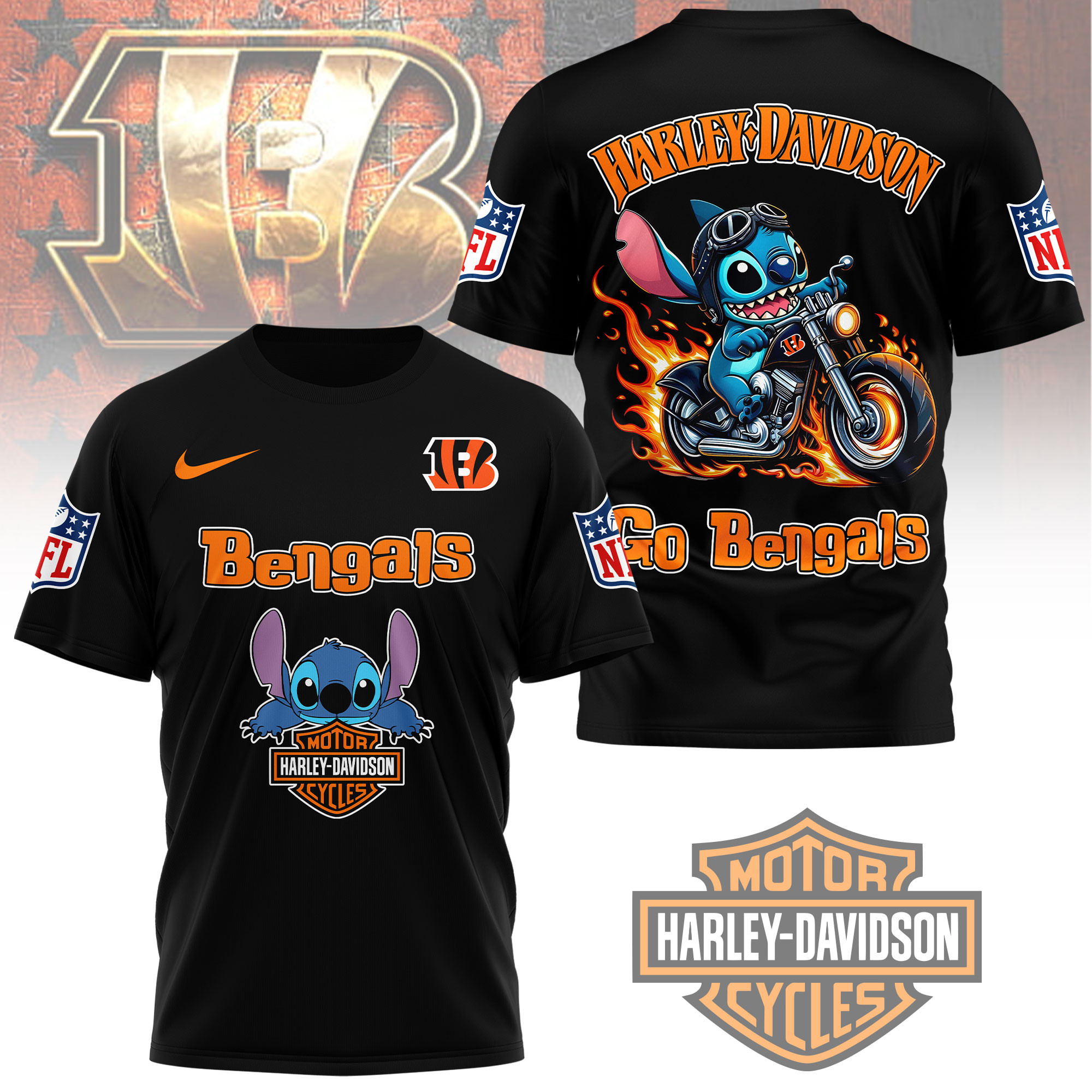 Cincinnati Bengals | Premium NFL Stitch Harley Davidson 3D Shirt