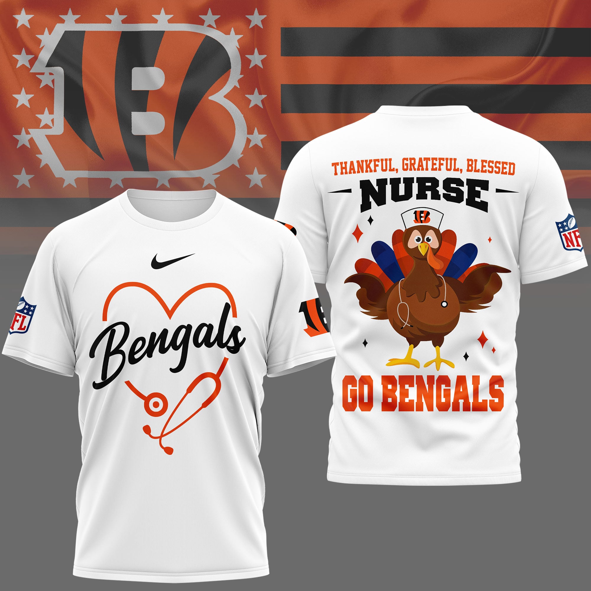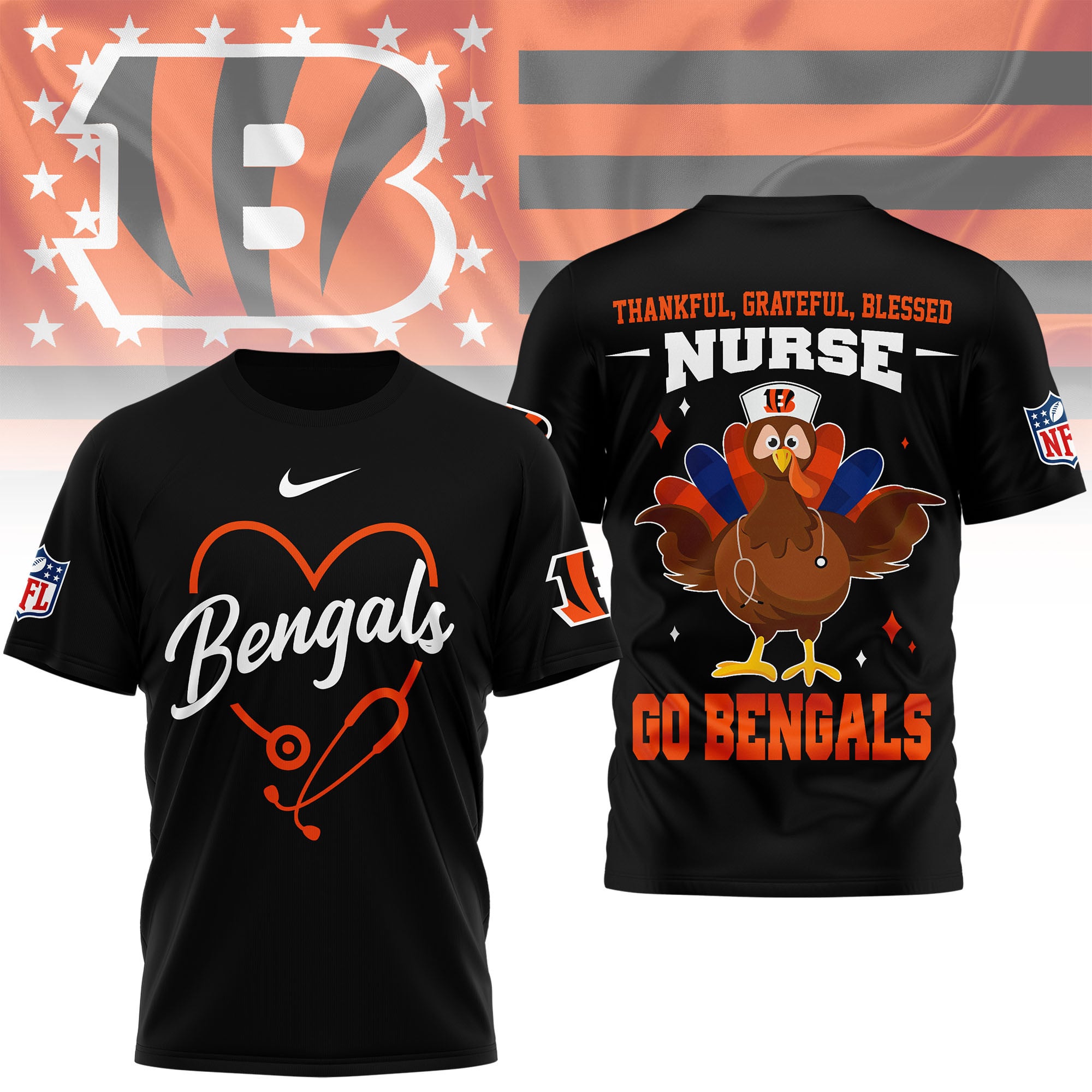 Cincinnati Bengals | Premium NFL Thankful Nurse 3D Shirt
