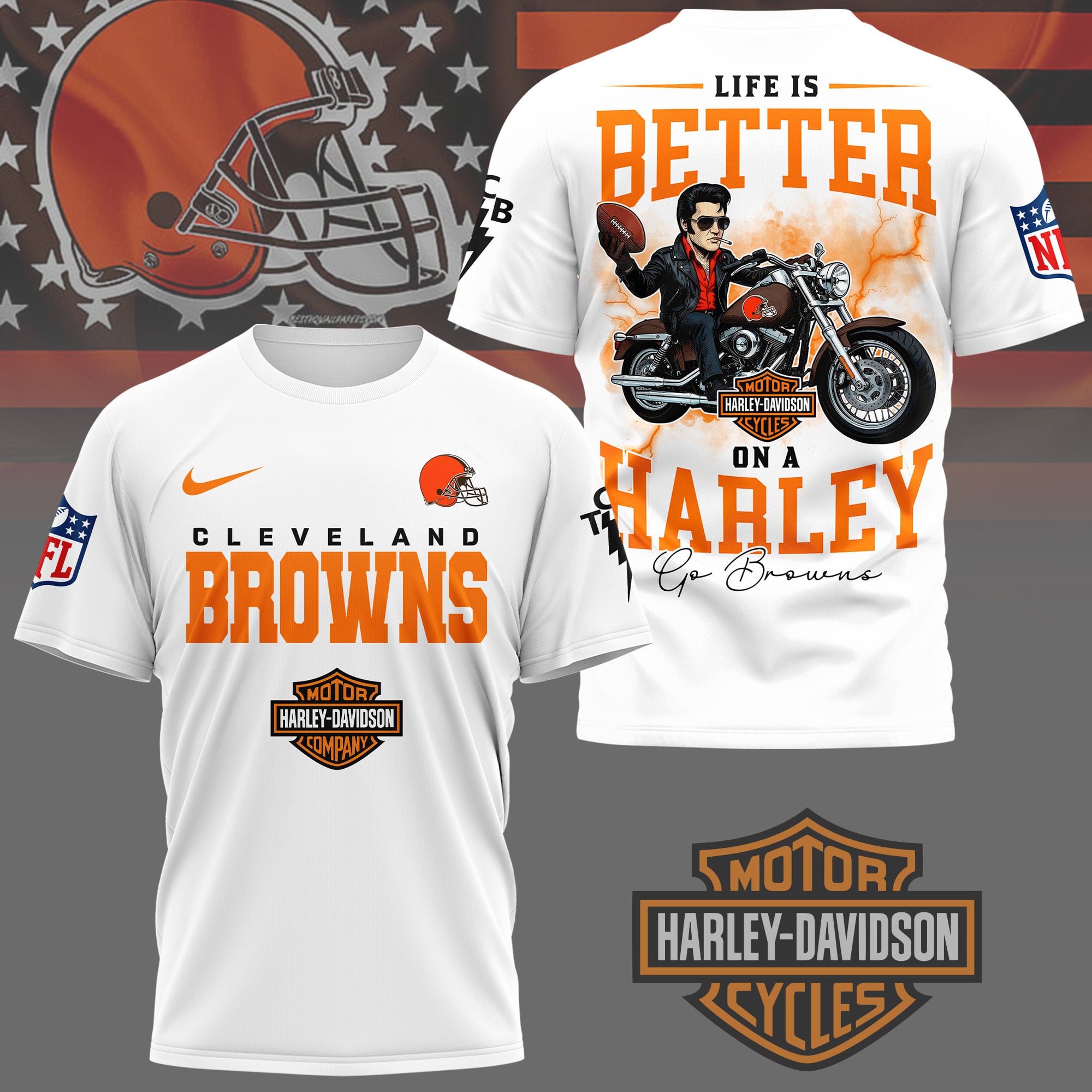 Cleveland Browns | Premium NFL Elvis Presley Harley Davidson 3D Shirt
