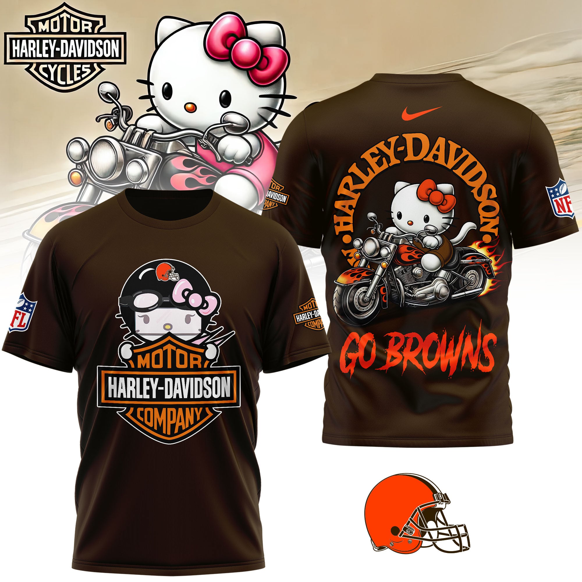 Cleveland Browns | Premium NFL Hello Kitty Harley Davidson 3D Shirt