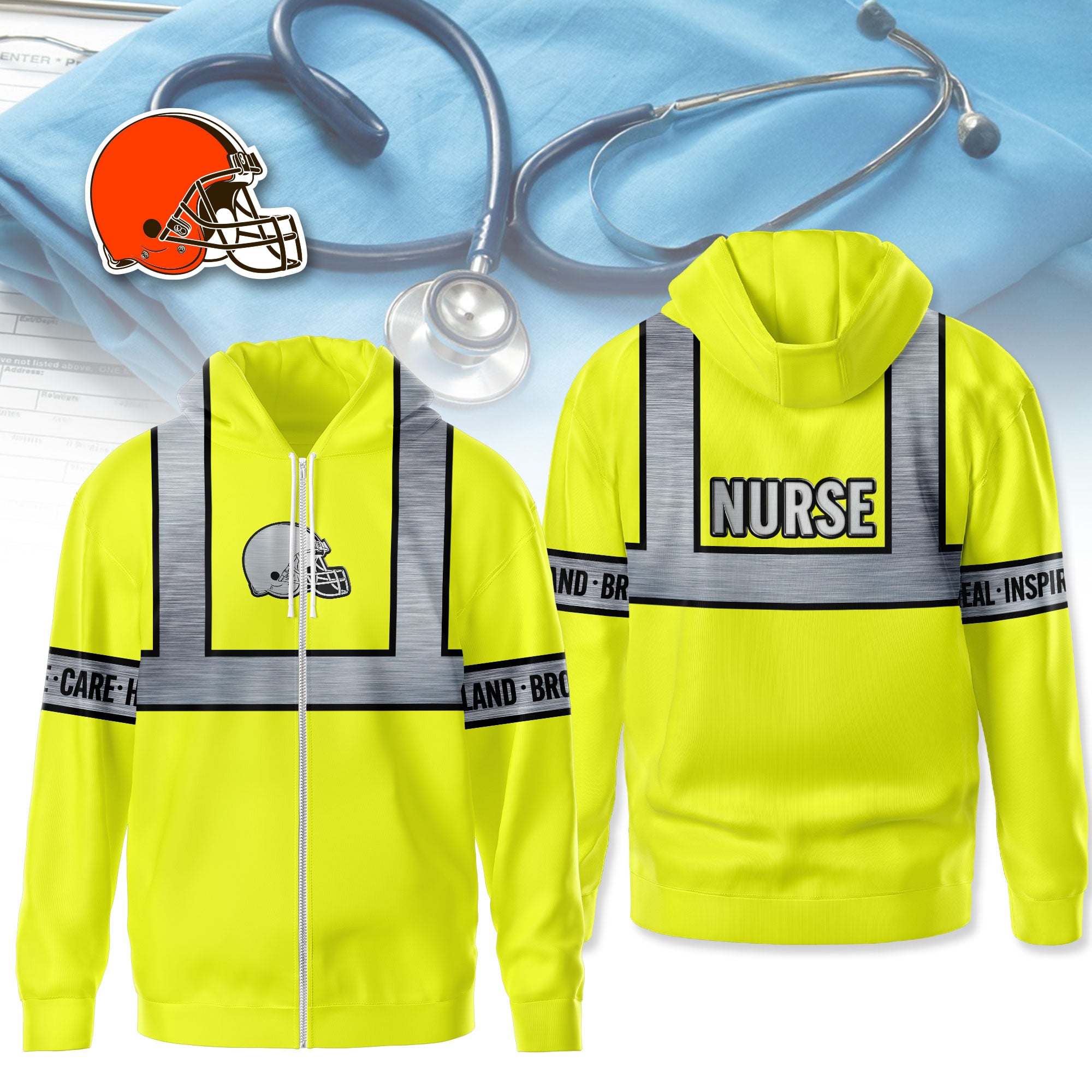 - This item: Cleveland Browns | Premium NFL Nurse Safety Hi Vis Hoodie Price range: $45.95 through $47.95
