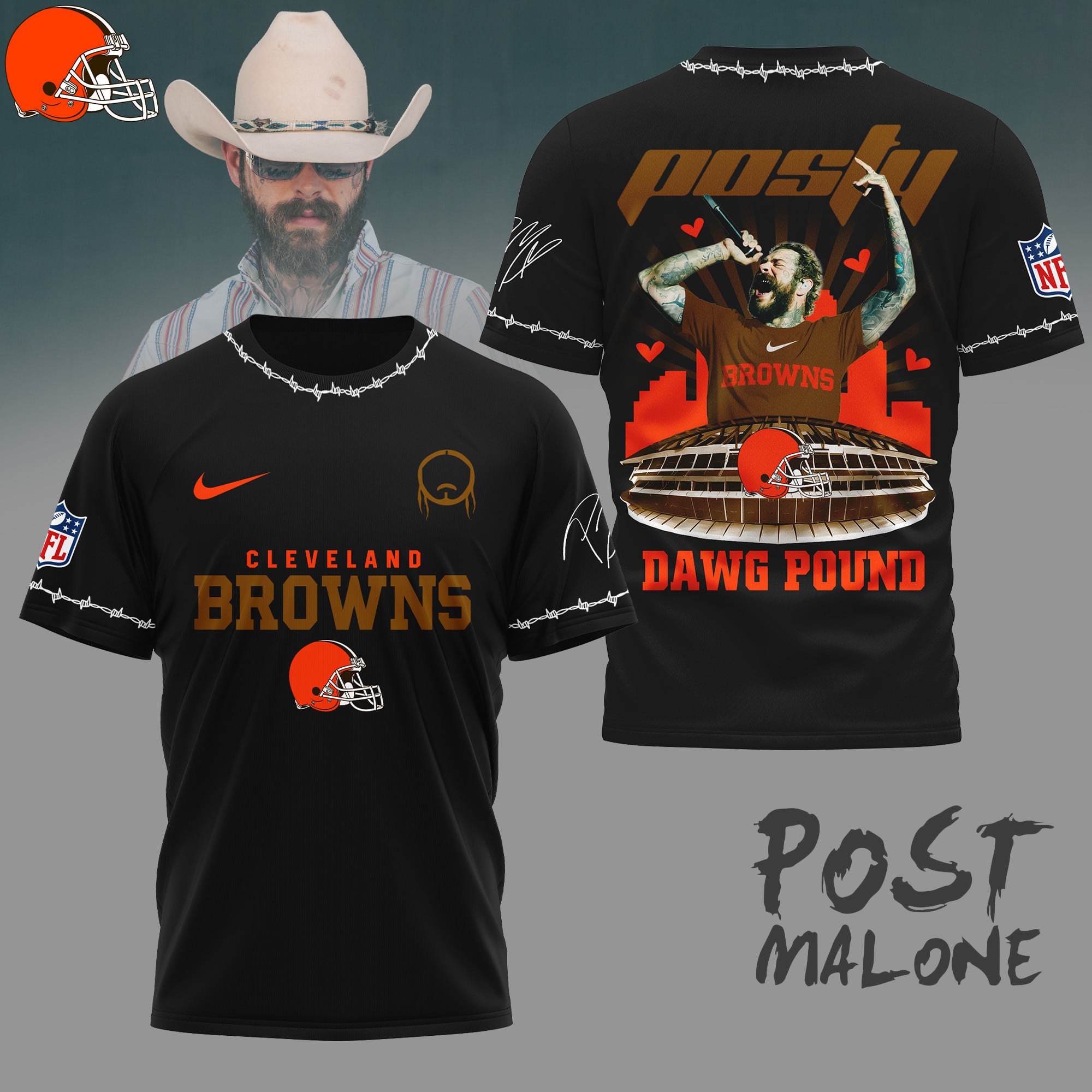 Cleveland Browns | Premium NFL Post Malone Fan 3D Shirt