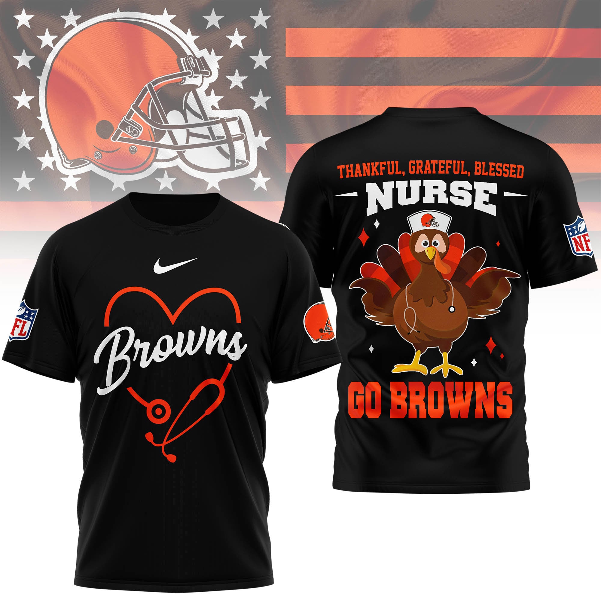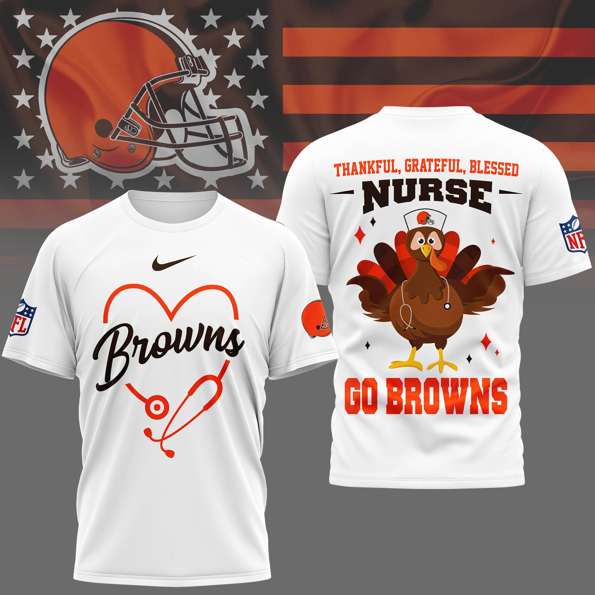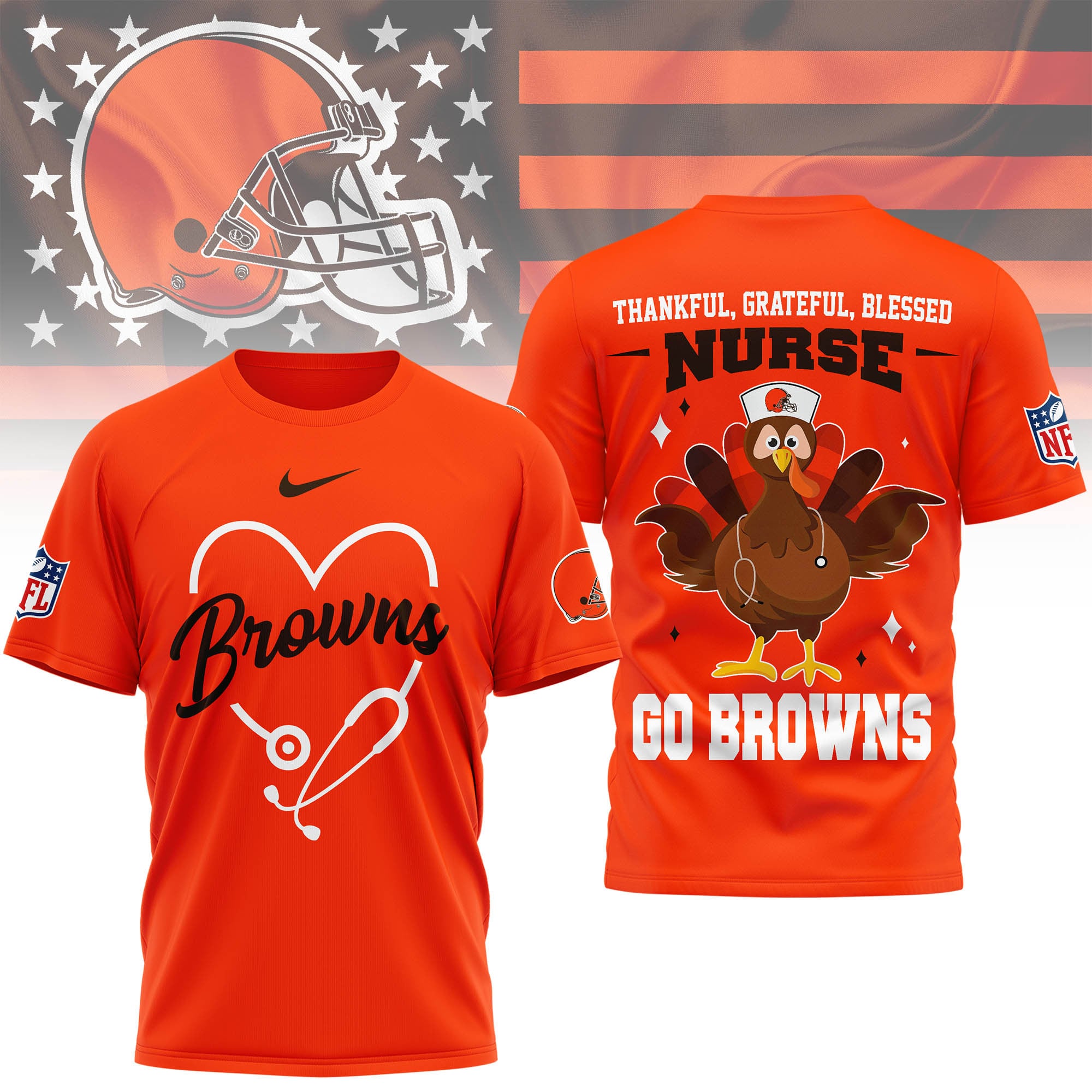 Cleveland Browns | Premium NFL Thankful Nurse 3D Shirt