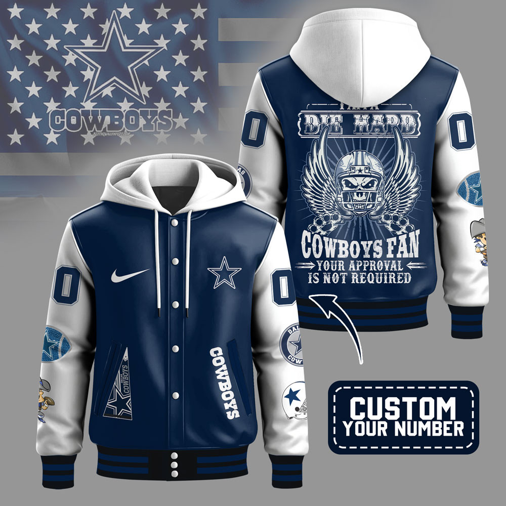 Categories: Dallas Cowboys, NFL, Premium NFL Die Hard Fan Hooded Baseball Jacket