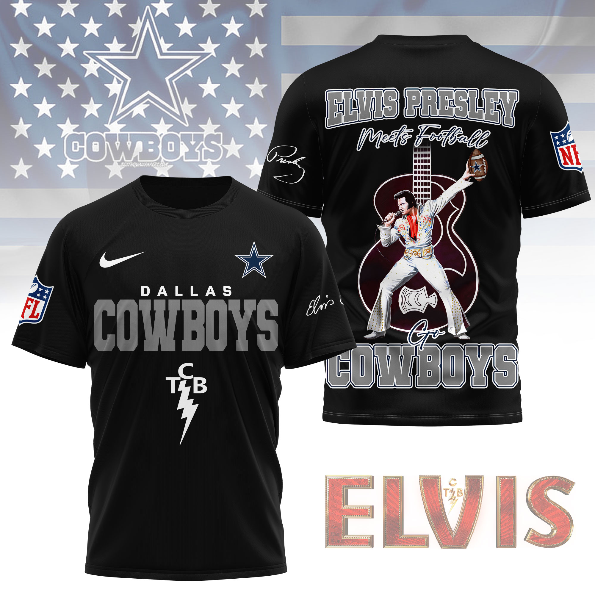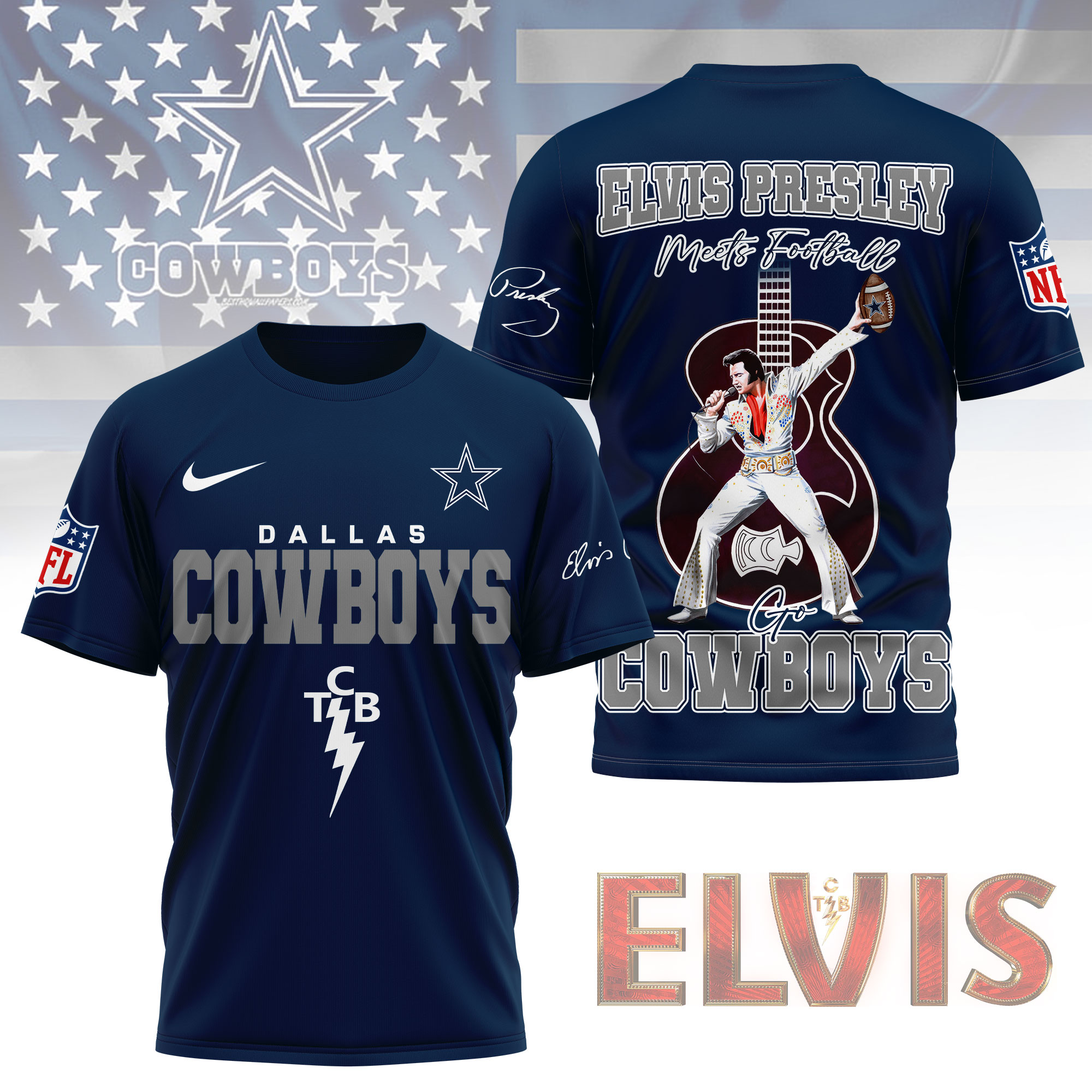Dallas Cowboys | Premium NFL Elvis Presley Fan 3D Shirt