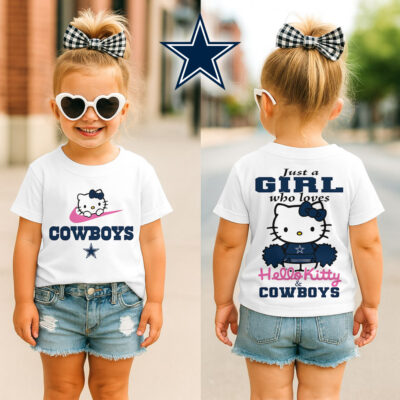 Dallas Cowboys | Premium NFL Football Girl Hello Kitty Fan Kid Shirt