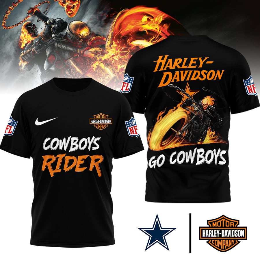 Dallas Cowboys | Premium NFL Ghost Rider Harley Davidson 3D Shirt