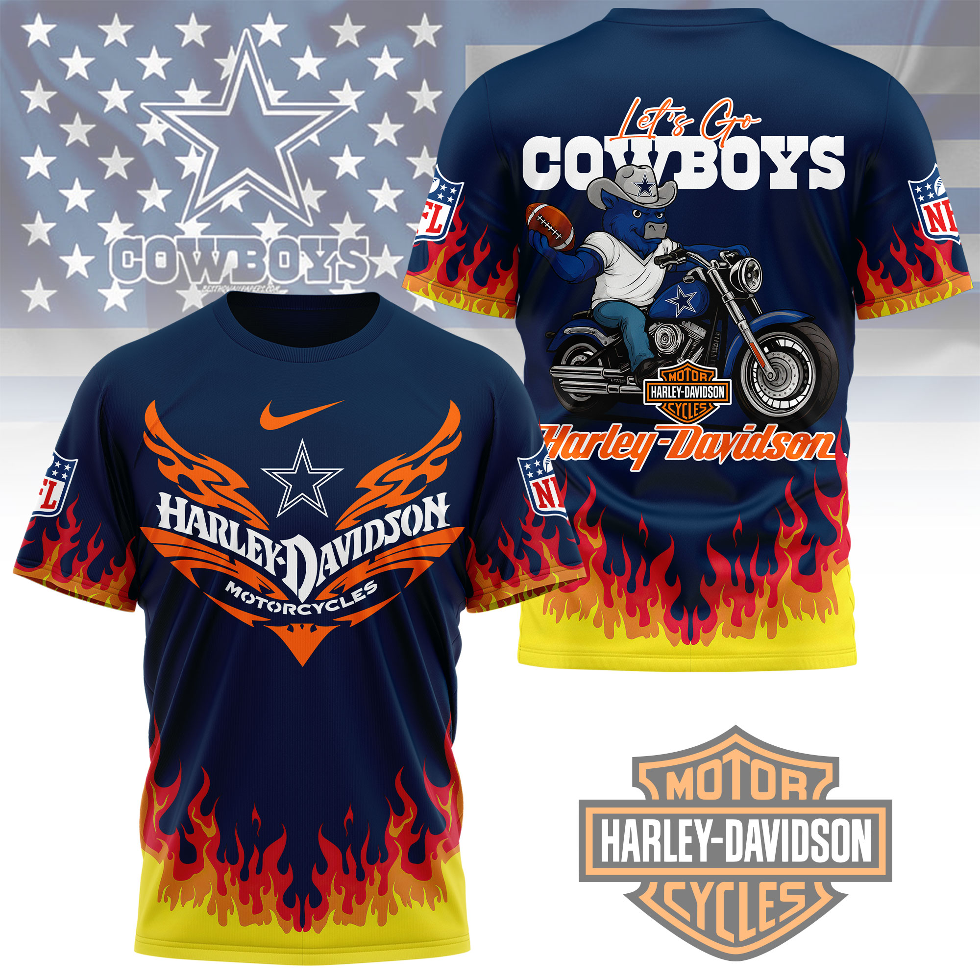 Dallas Cowboys | Premium NFL Harley Davidson Firewave 3D Shirt