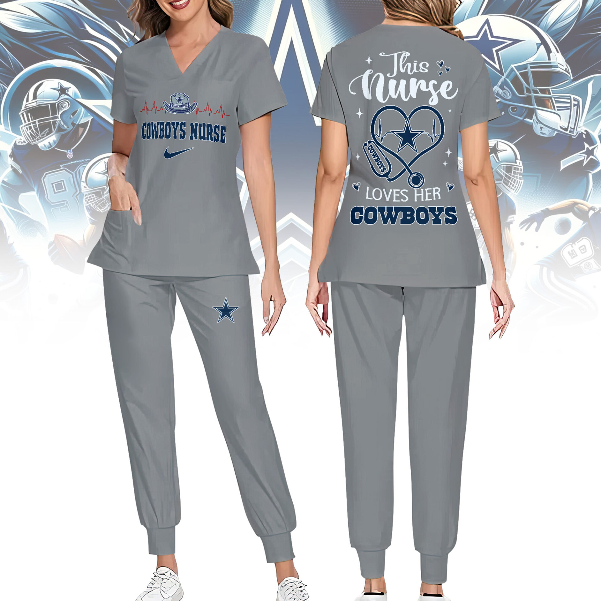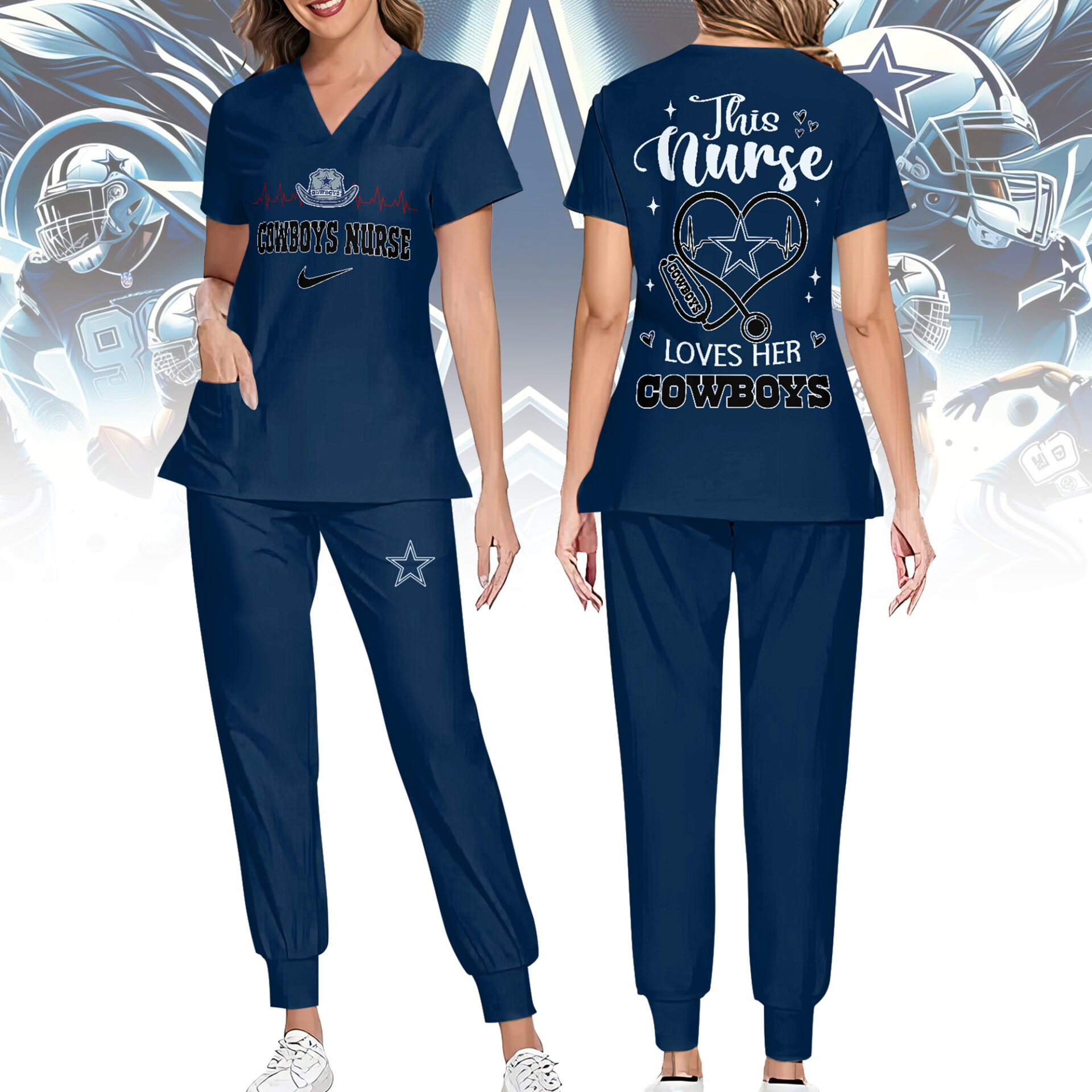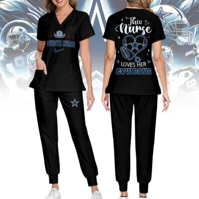 Dallas Cowboys | Premium NFL Nurse Appreciation Stretch V-Neck Scrub Top And Jogger Pant