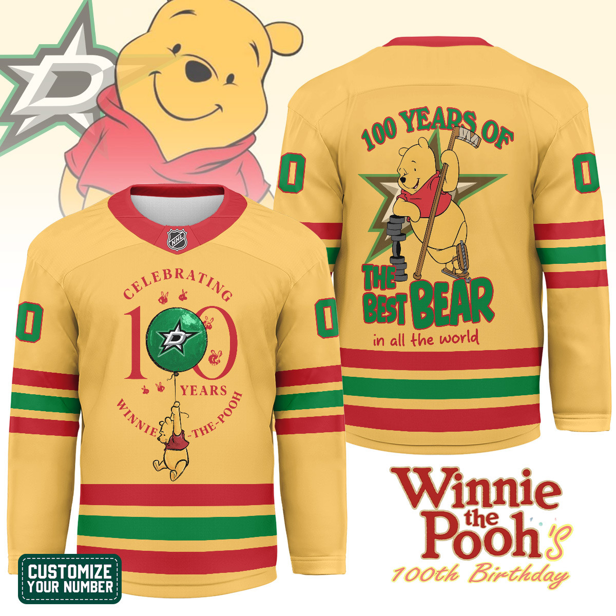 Dallas Stars | Premium NHL Winnie The Pooh 100th Anniversary Hockey Jersey