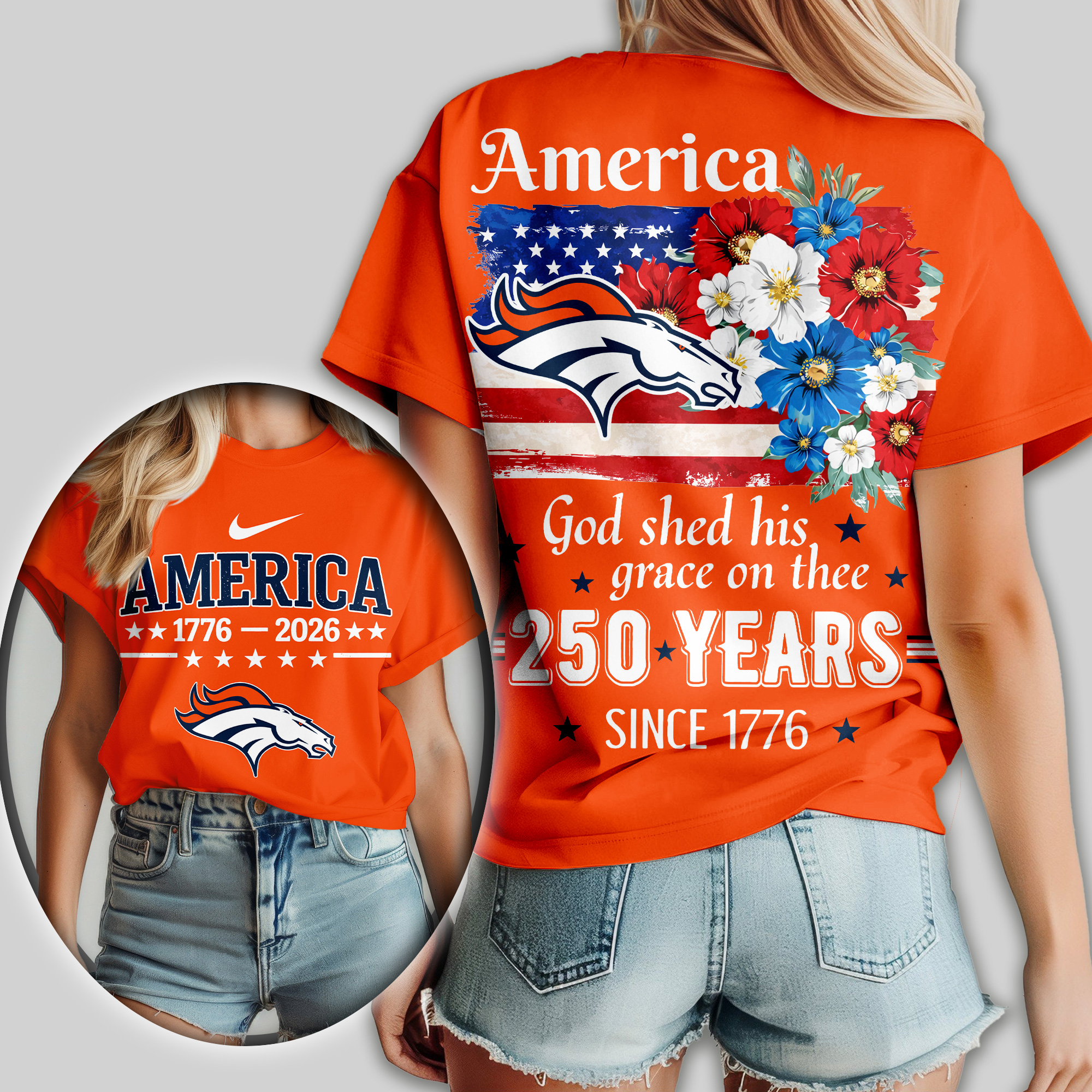 Denver Broncos | Premium NFL America God Shed His Grace On Thee Women Shirt