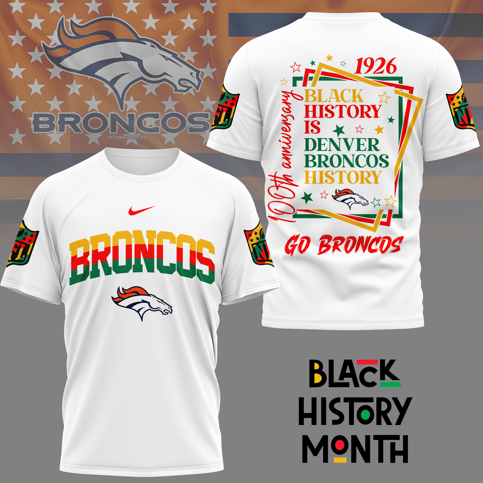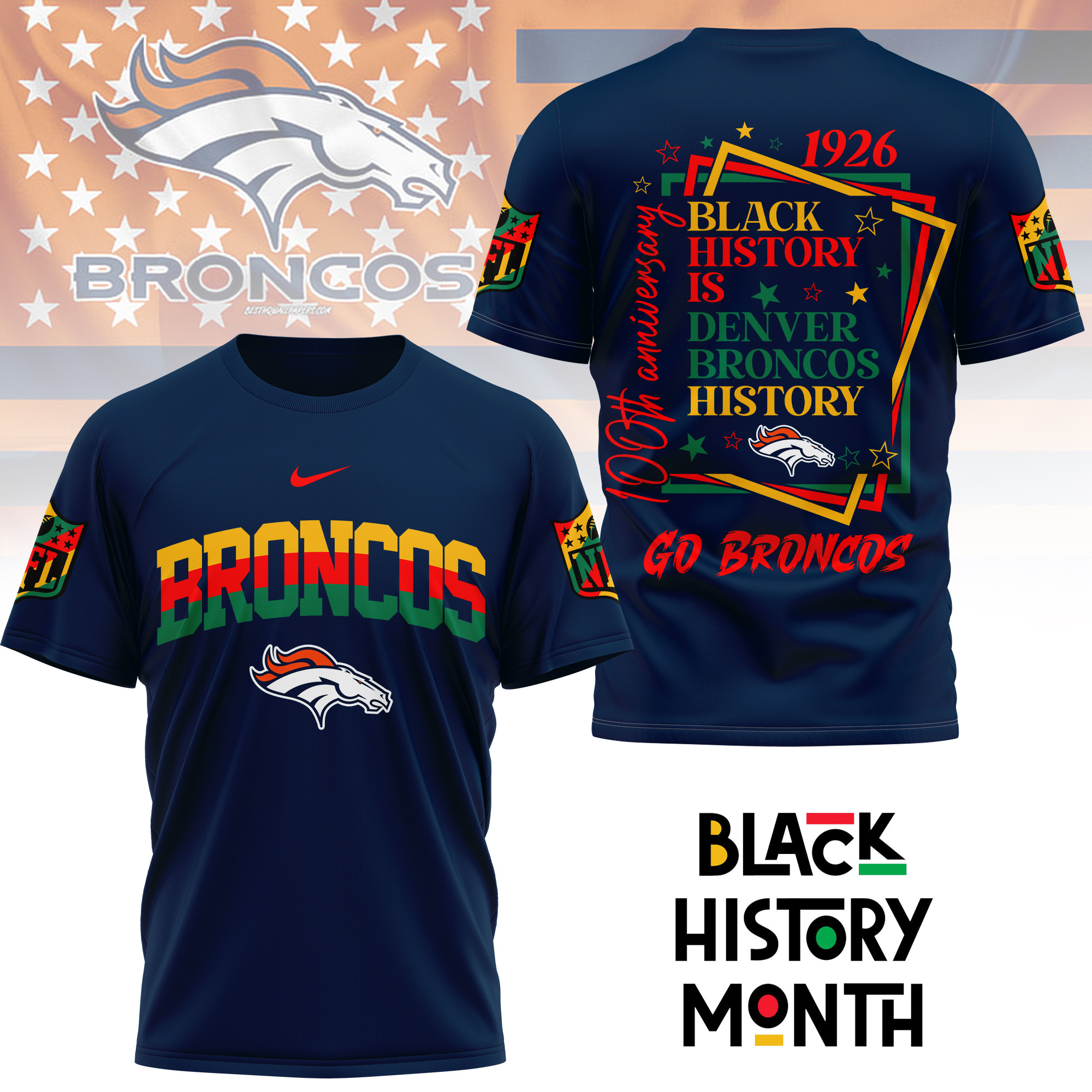 Denver Broncos | Premium NFL Black History Month 3D Shirt