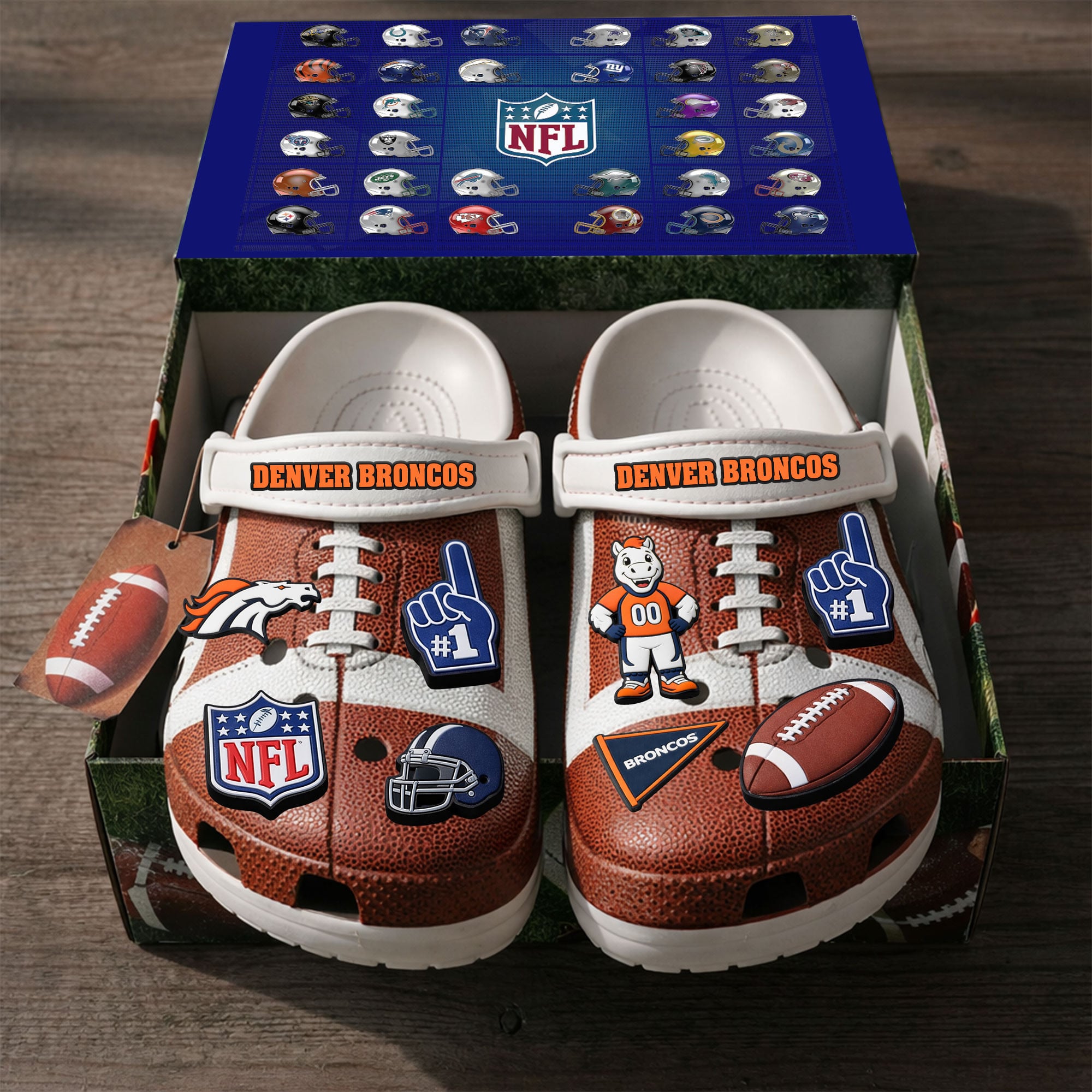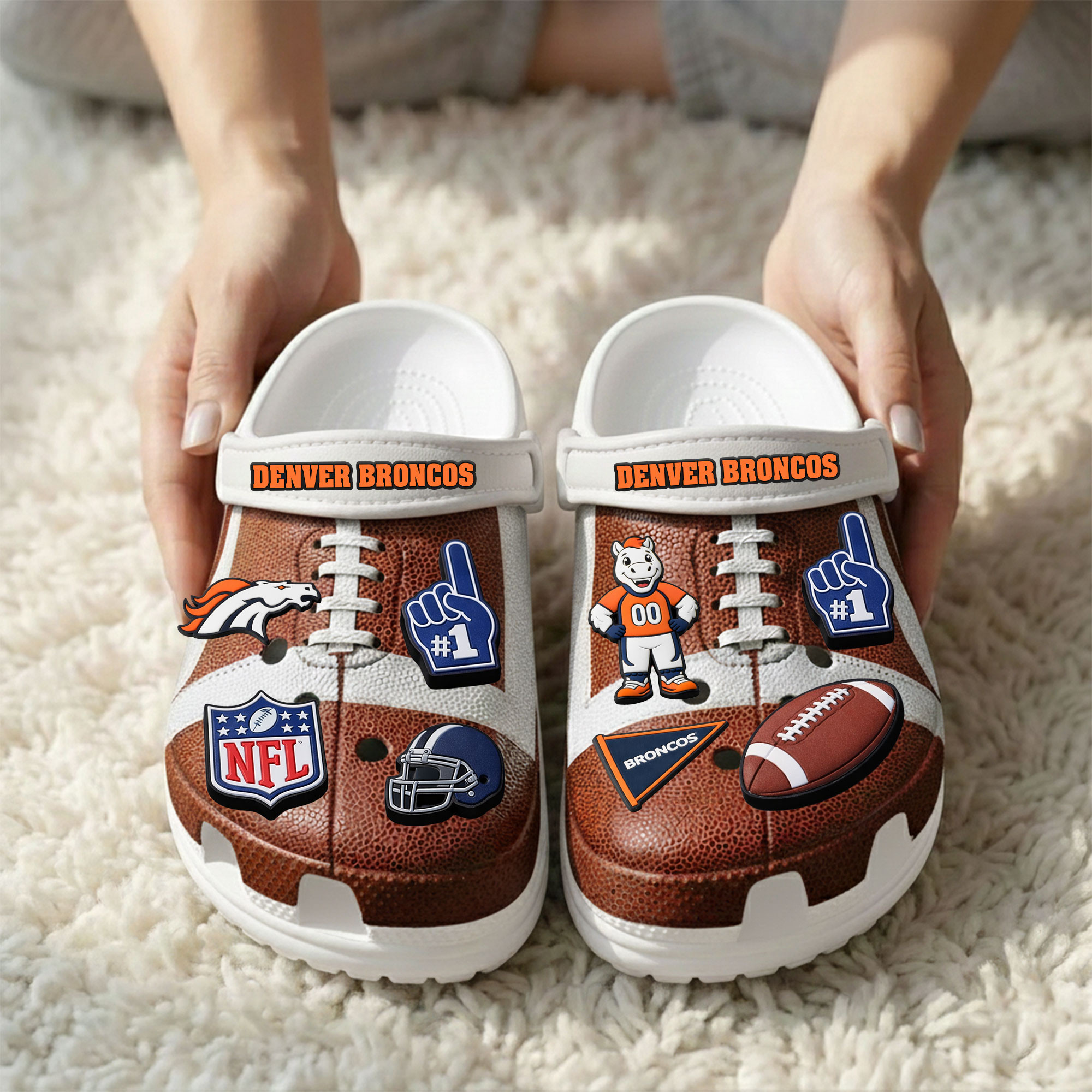 - This item: Denver Broncos | PREMIUM NFL CLOGS WITH CHARMS Original price was: $119.99.$74.99Current price is: $74.99.